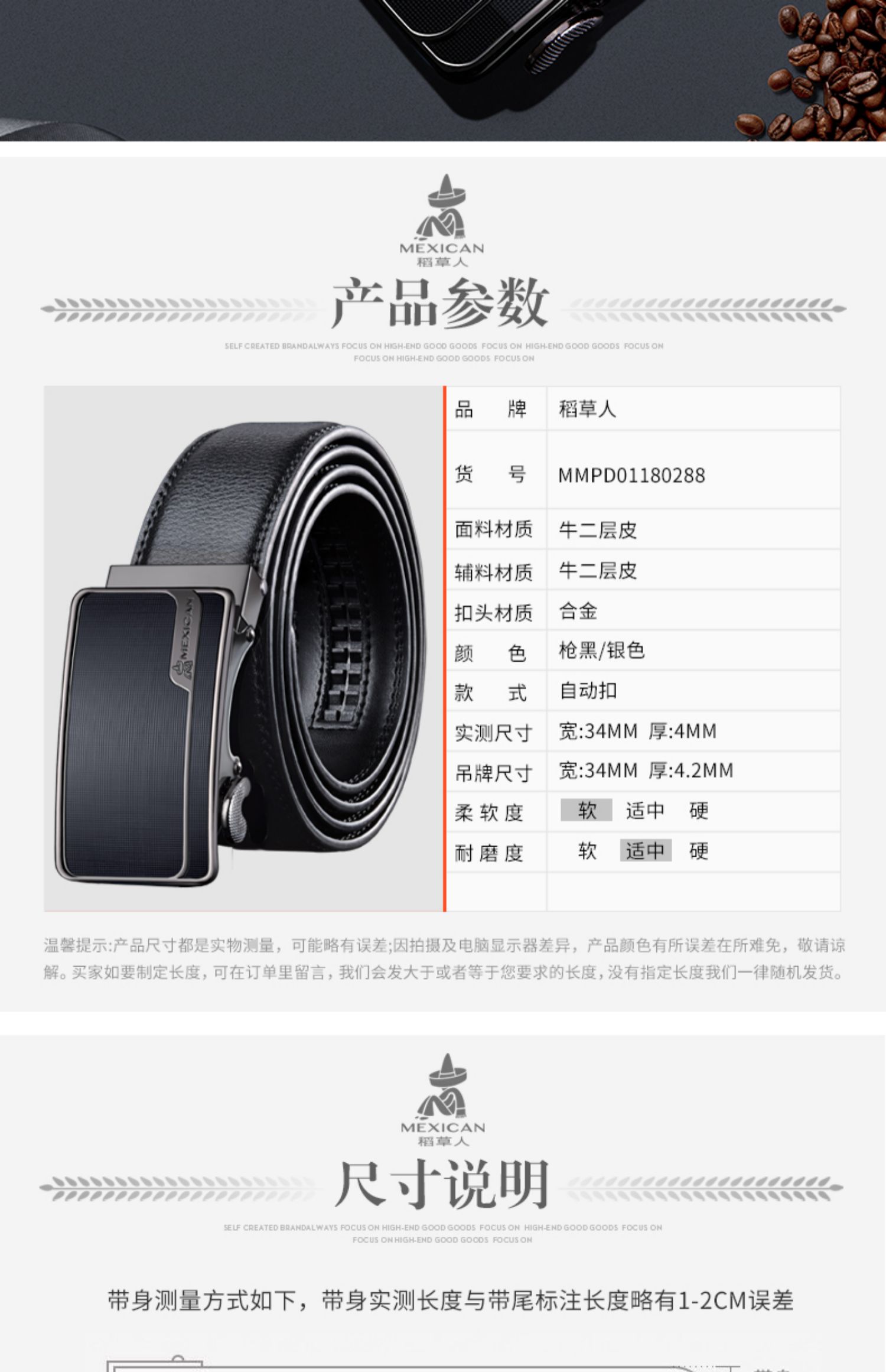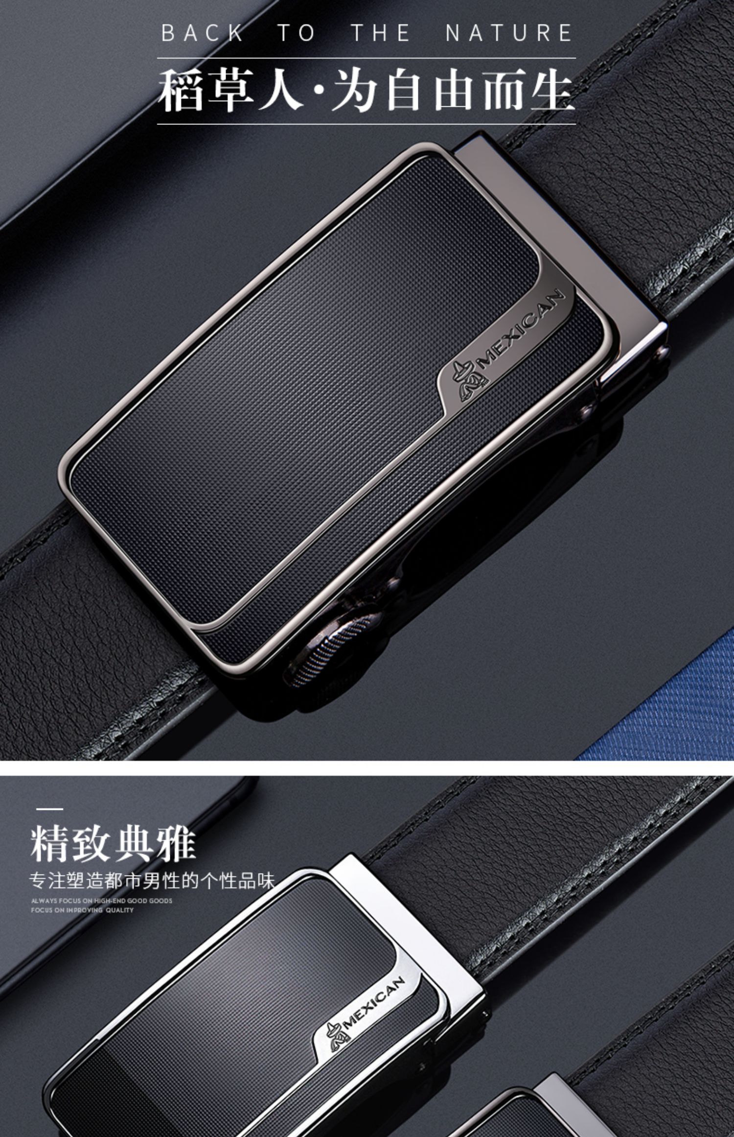 稻草人自动扣真皮皮带,精选牛皮,双倍耐磨多款可选,简约时尚,四季潮流百搭,彰显男人的魅力,精美礼盒包装。多种款式可选【赠运费险】