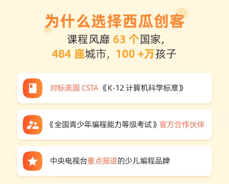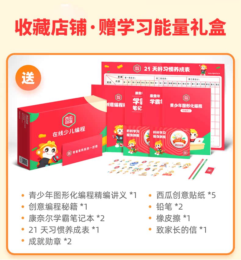 西瓜创客小学生编程入门视频课程(送119元学习套装),零基础在线课程,1对1指导,课程可回看,在线随时学,提升孩子数理分析逻辑,便成特长升学加分哦。赶紧来学让孩子爱思考爱分析!