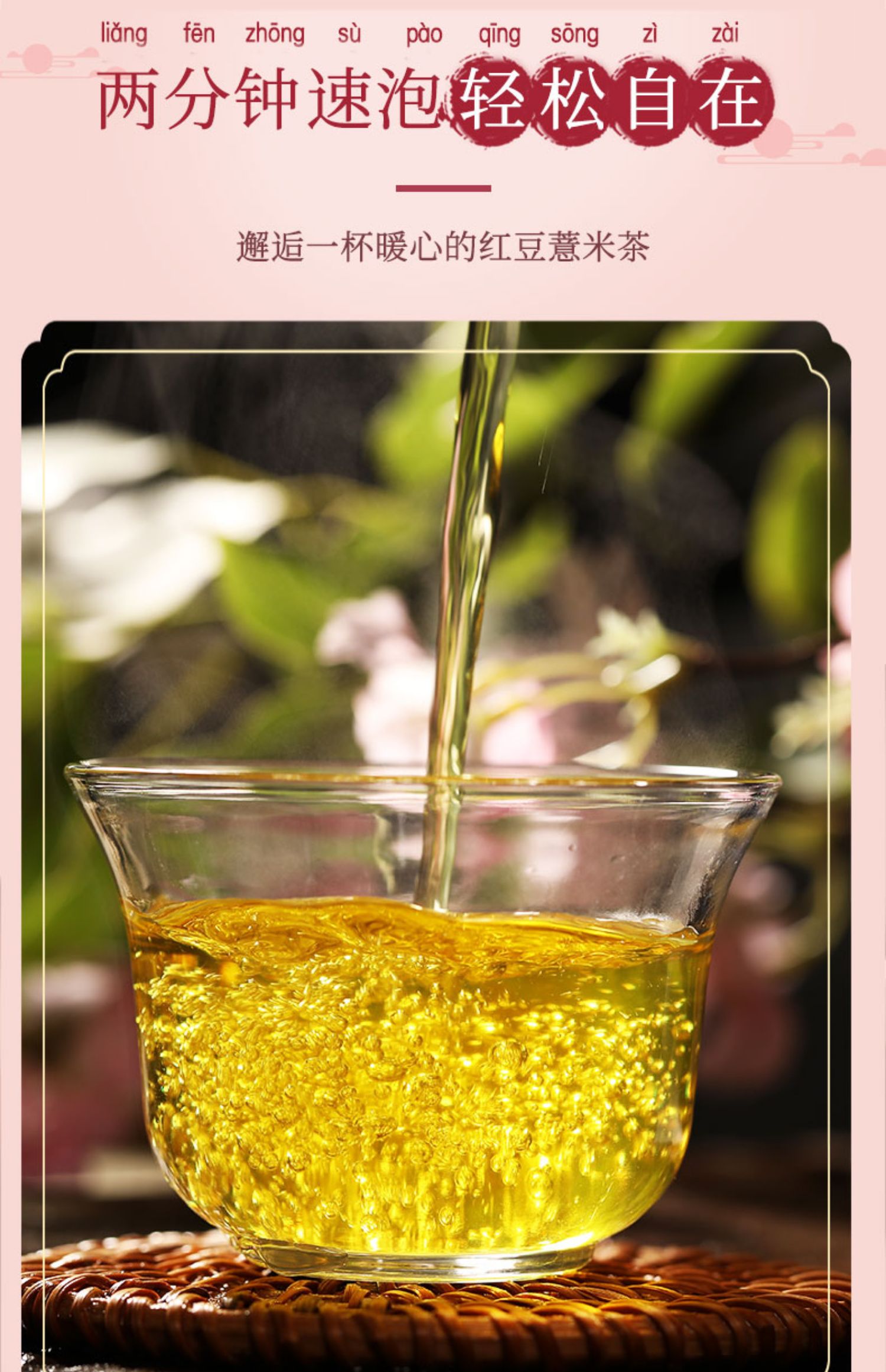 红豆薏米芡实茶,精选优质的原材料,温和配方,无刺激,无添加剂,具有祛湿祛毒,美容养颜的功效,独立包装,携带方便,冲泡简单,是你的养生之茶哦!