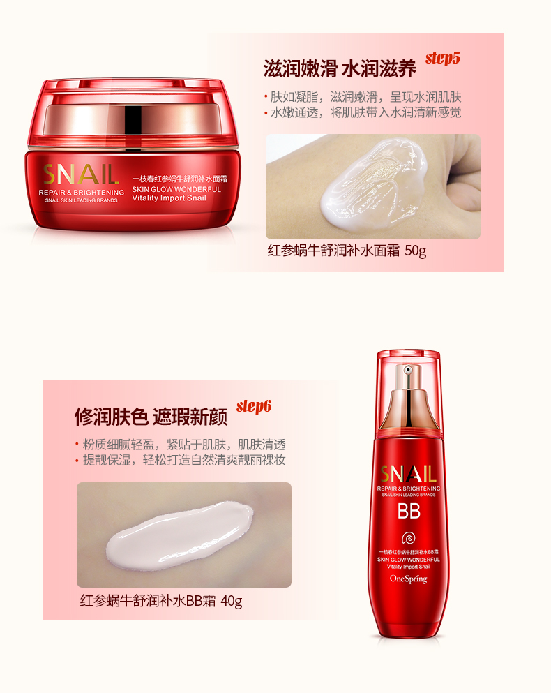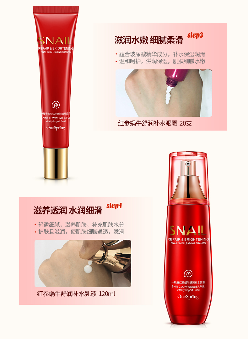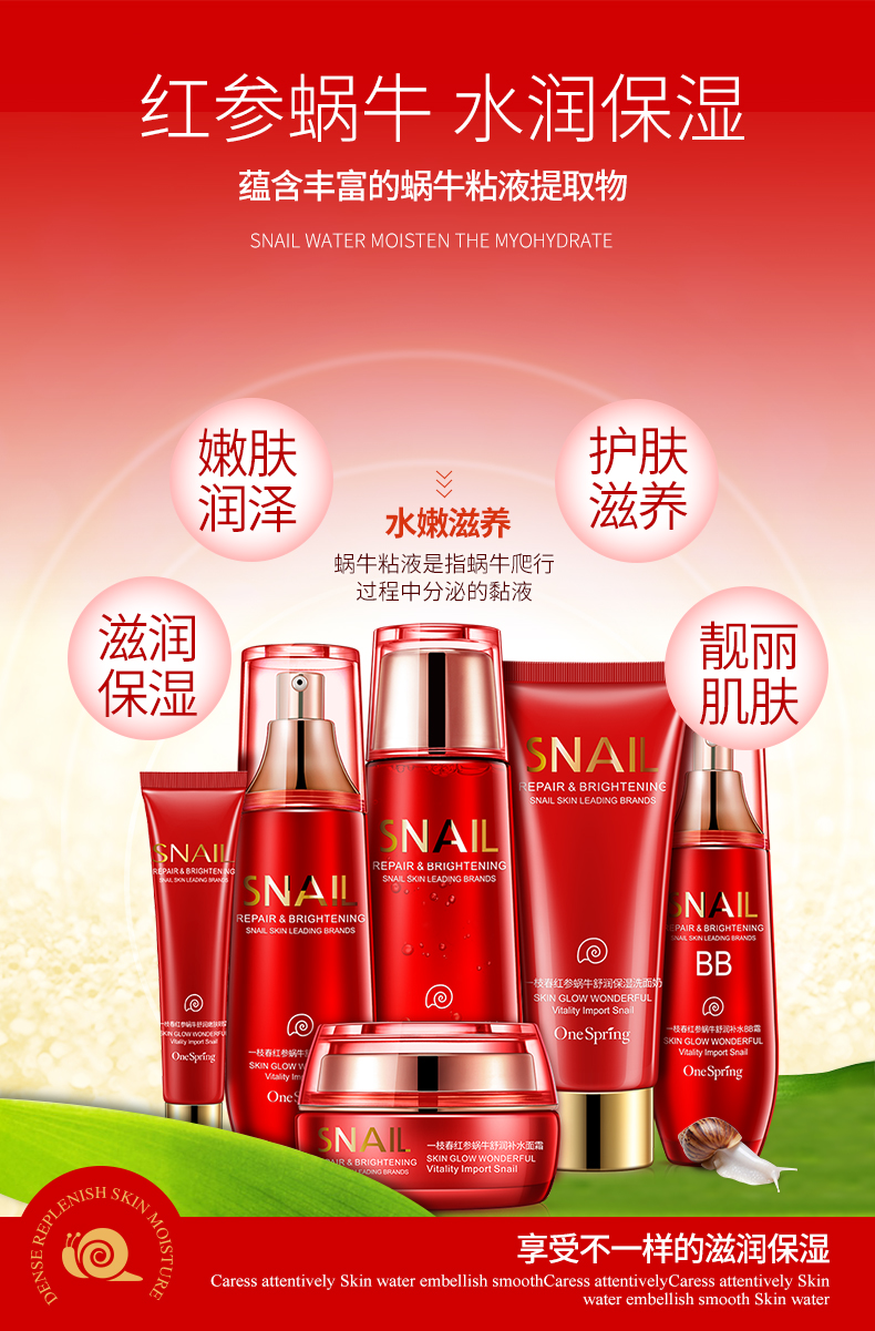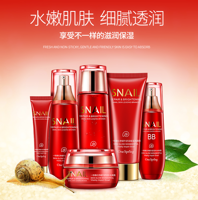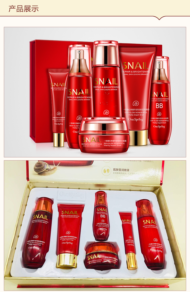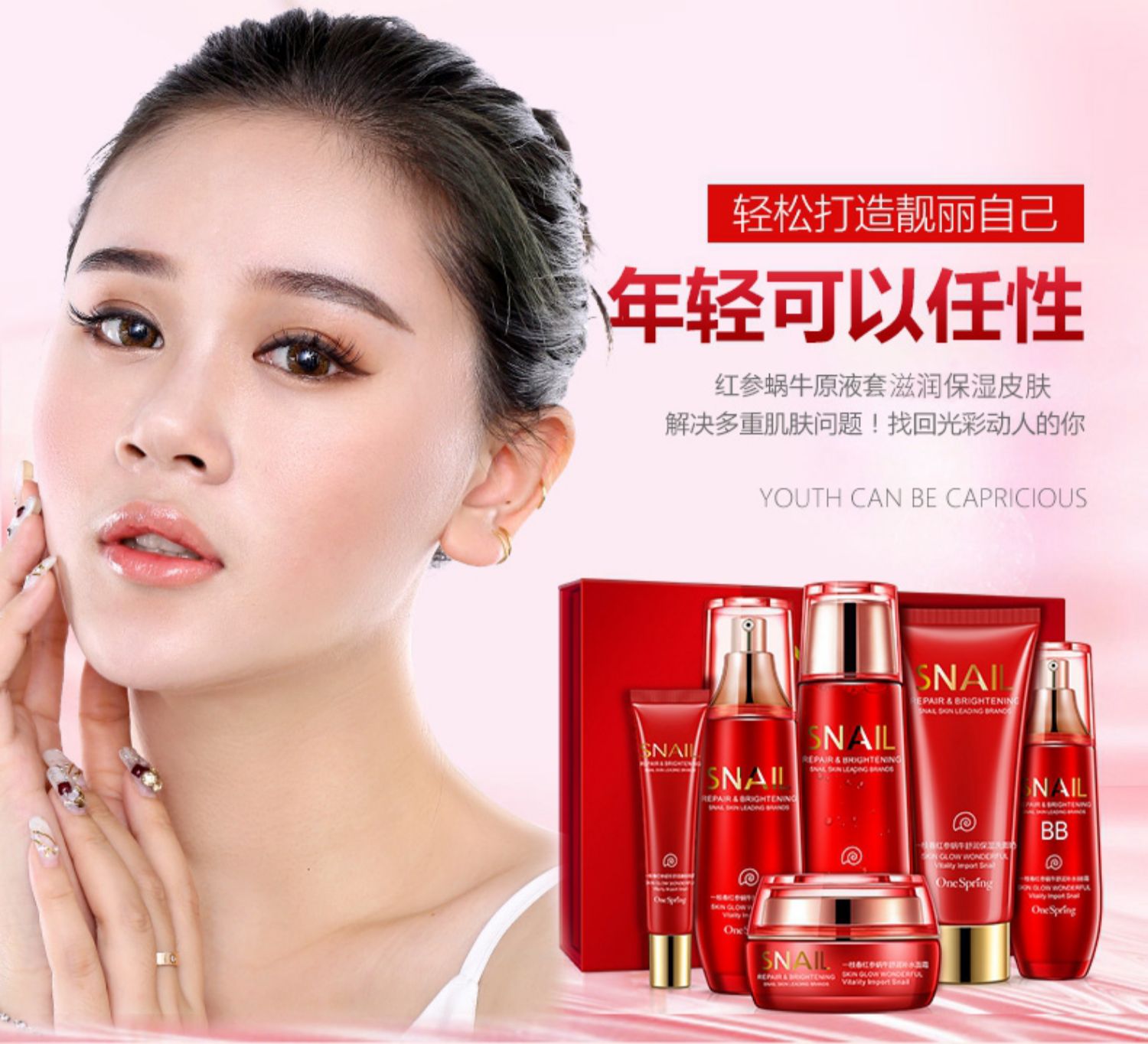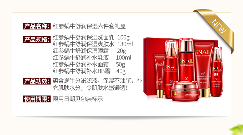屈臣氏热卖!红参蜗牛6件套礼盒,舒润保湿,滋养肌肤,柔嫩水润,帮助改善肌肤干燥,让肌肤水嫩、嫩滑【洗面奶、爽肤水、乳液、面霜、眼霜、BB霜等6件套】