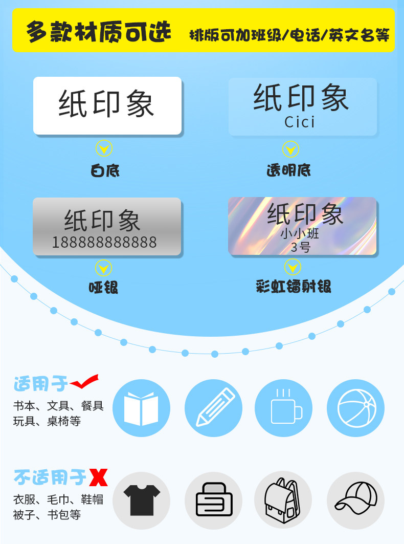 幼儿园姓名贴纸定制透明防水,儿童学生名字贴纸宝宝水杯文具名字条,防水耐磨、不掉色、免剪裁、材料环保。