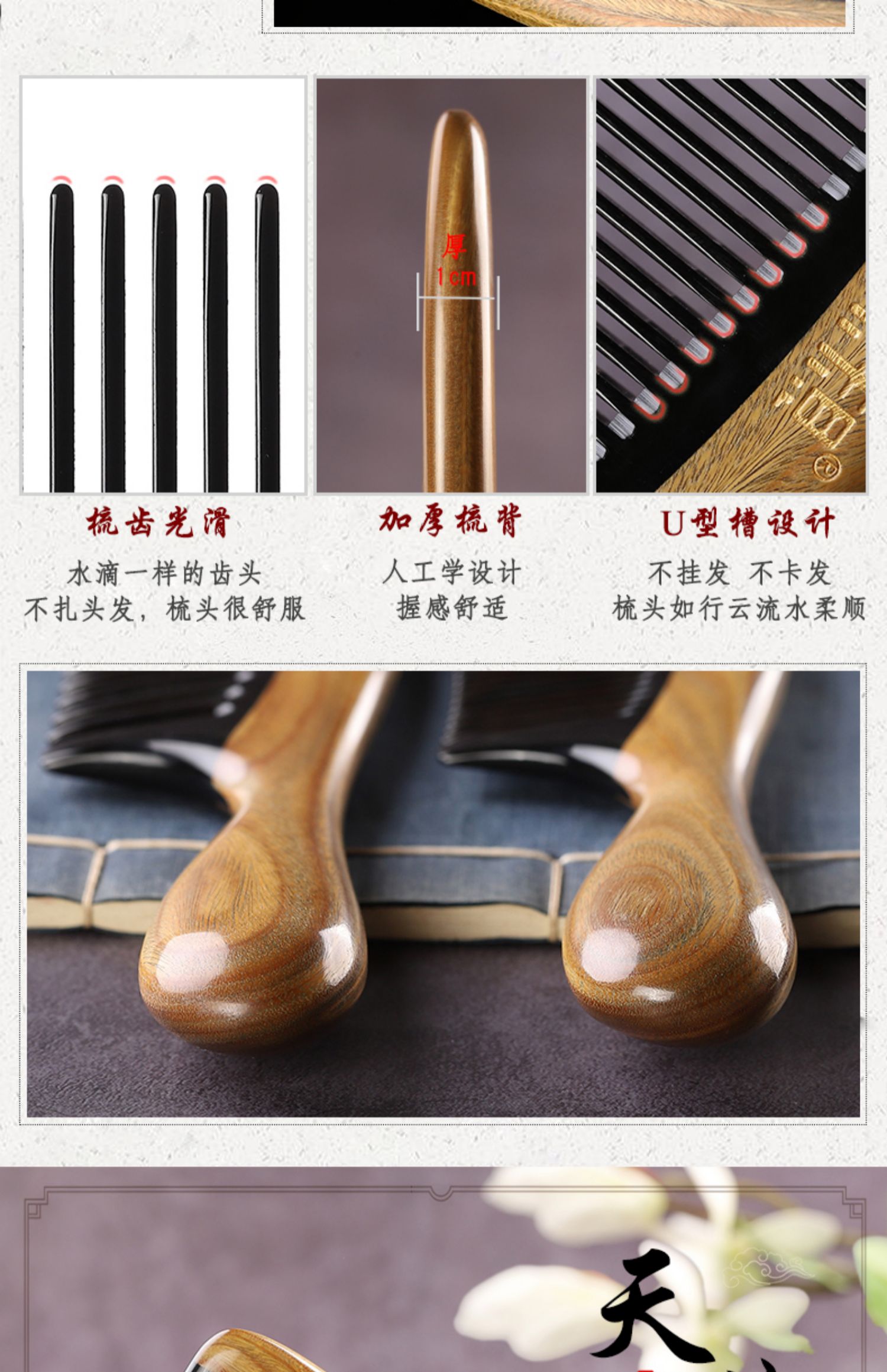 【多款可选,天然无静电!】老桃木梳,厚重手感好,复古雕花,质感爆棚!可按摩头皮还防静电,可定制刻字,刻图,幸福寄语,将爱定格!定制一把自己的专属木梳!送长辈必备佳品。