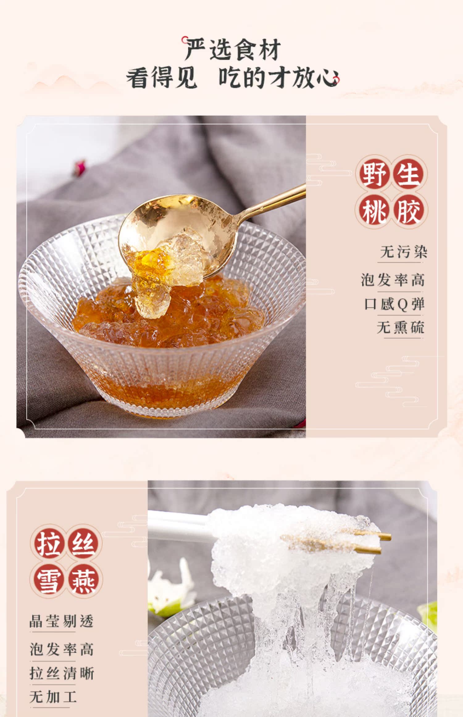 【买2送5】来一碗甜品桃胶,相当于敷30片面膜,精选优品,弹性爽滑,圆润饱满,晶莹剔透,丝丝稠密,补充胶原蛋白,天然滋补品,由内而外,焕发魅力容颜,吃出好肌肤,吃出好气色~女性的挚爱