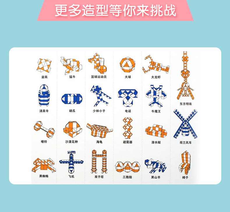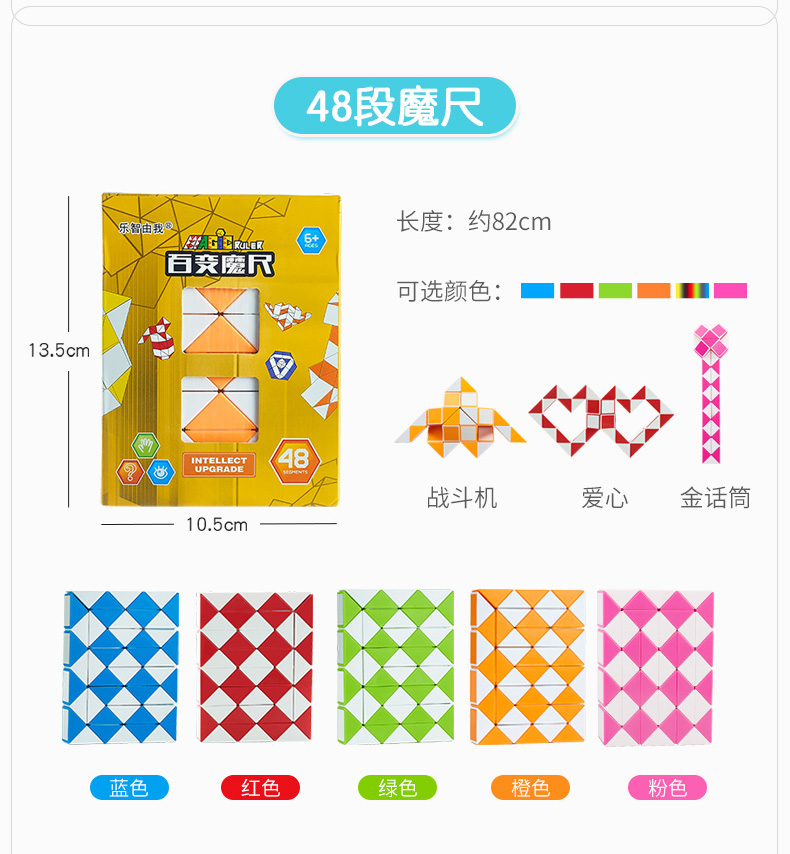 【送34页魔尺书】益智玩具,孩子越玩越聪明!3C认证,耐摔耐折,顺滑灵活,做工精致!锻炼孩子动手能力和空间想象力,多种长度可选,各种造型,快快拼起来!