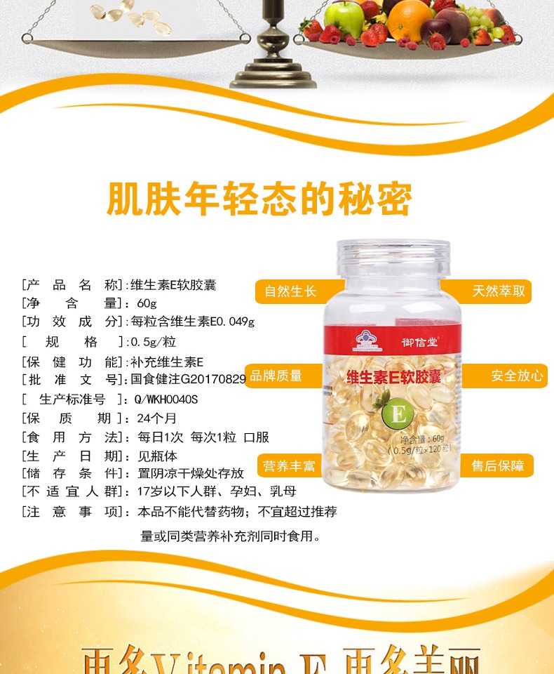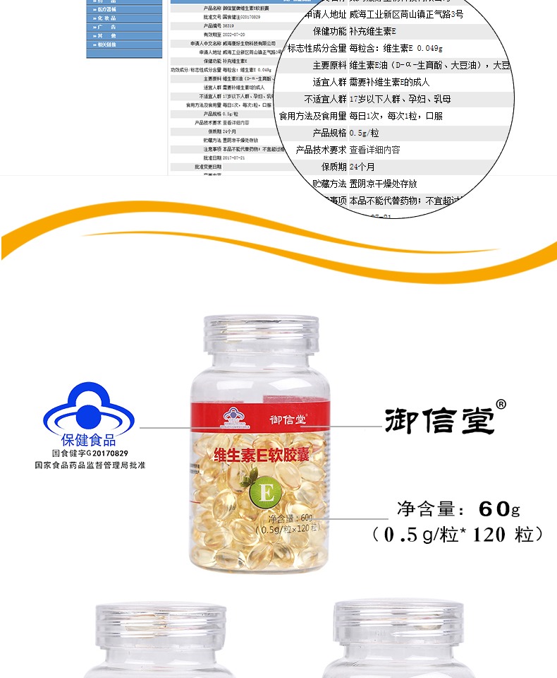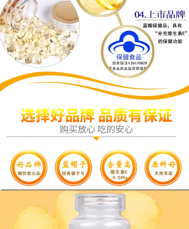 【赠运费险】线上线下累计销售10W瓶,御信堂维生素E软胶囊!有蓝帽子认证的,放心吃~萃取天然大豆精华,每日吃1粒,美容养颜,抗衰老,还能提高免疫力,越吃越青春!