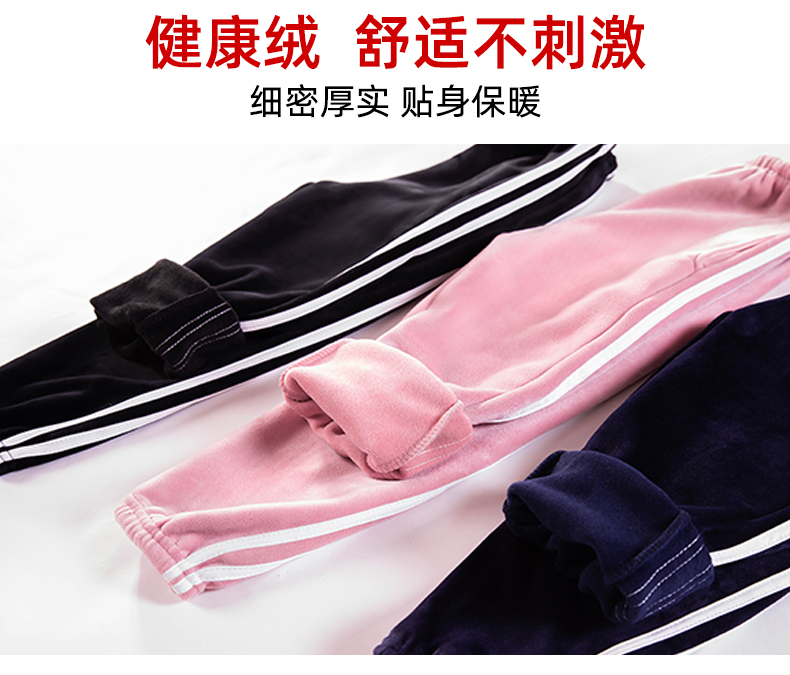 抗旱保暖!升级版金丝绒加绒加厚保暖条纹运动裤,健康绒,舒适不刺激肌肤,细密厚实,贴身保暖,透气亲肤,耐穿耐磨,不起球,弹性材质,不束缚运动姿态,时尚不拘束。冬季一条就够了。