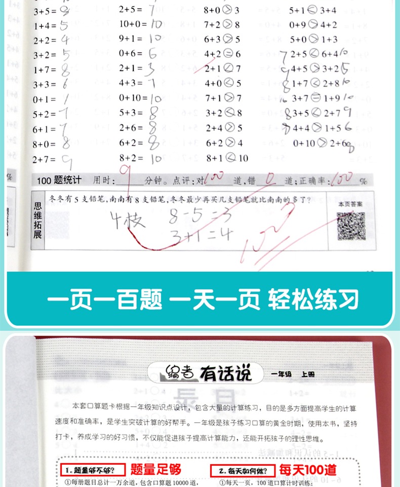 【口算难么,多练就不难了】好口算,是练出来的。每天100道口算计时训练,家长批改,孩子改错。进位加减,混合计算,比大小。勤练习,口算杠杠的。【赠运费险】