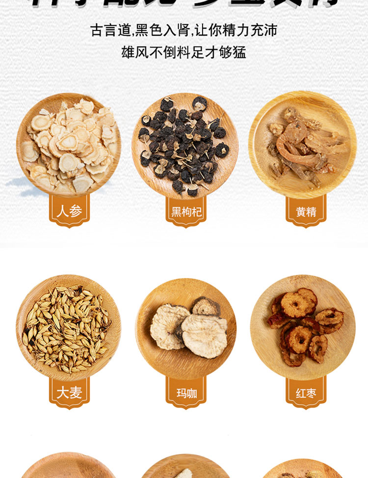 【正品男人五宝茶】精选人参,玛咖,枸杞,桑葚,山药等真材实料!有效解决熬夜,气血亏损,肾虚等疾病!一冲即饮,补气养元又补肾,让你精力充沛信心满满,赶紧入手吧!男女都可喝~【赠运费险】