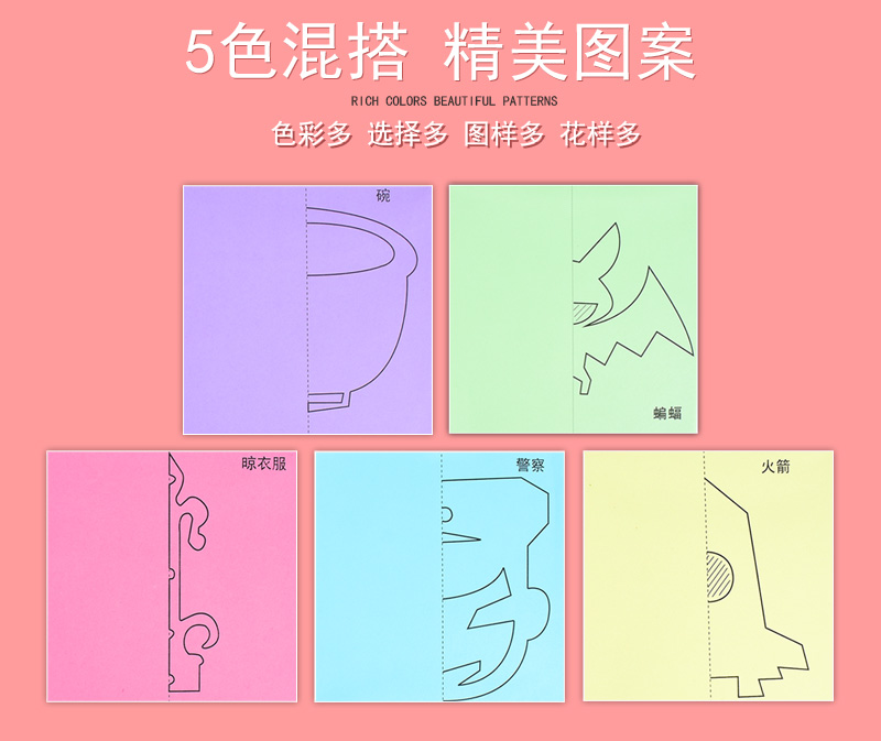 色彩鲜艳,颜色丰富,各种造型随意造!纸张无异味,环保放心。远离电子产品,益智动脑,陪孩子一起玩吧。