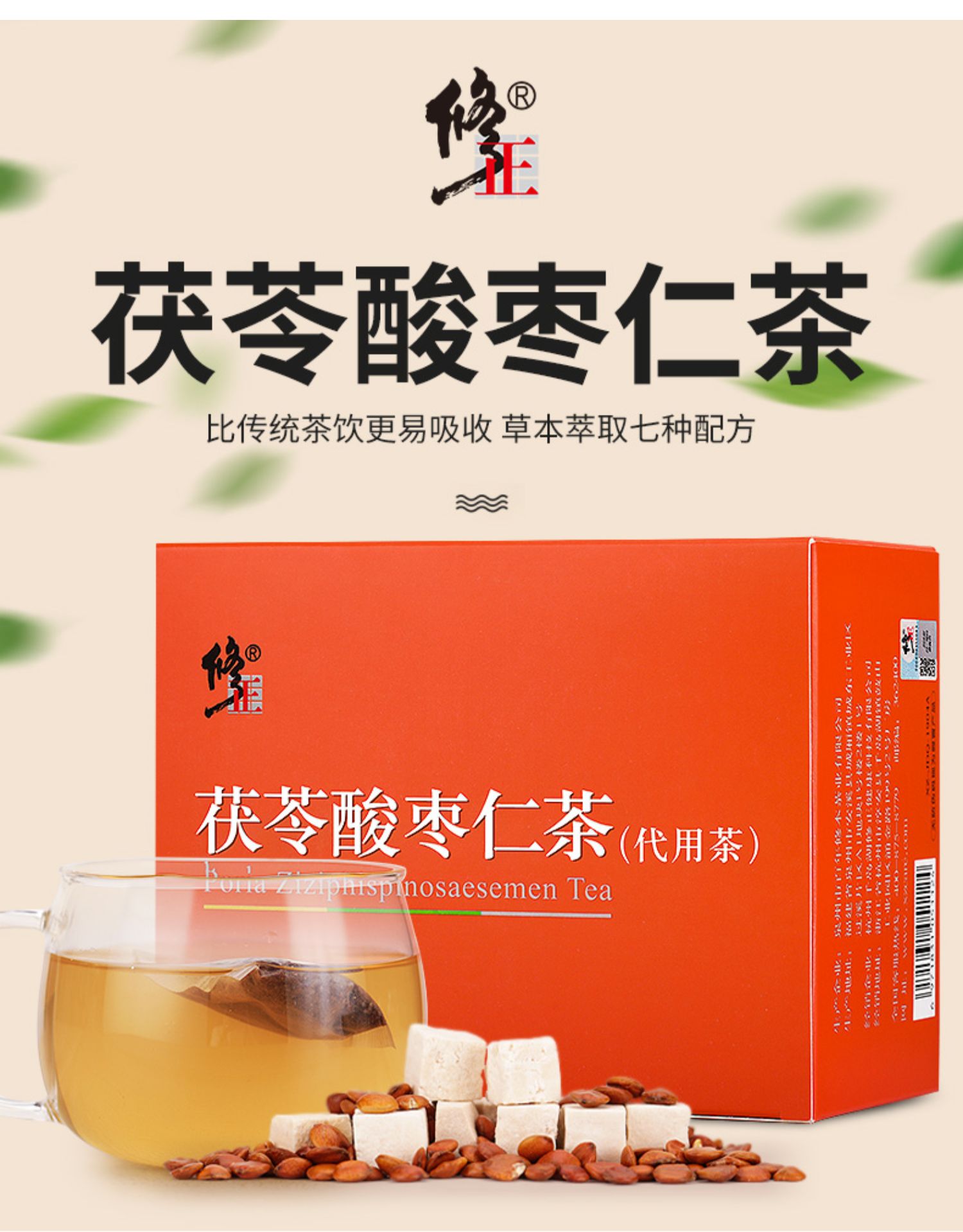 【买二发三】难入睡的可以试试这款~修正正品酸枣仁茶,茶汤清澈,茶香萦绕,味道醇厚。睡前一小时饮用,轻松享受好睡眠。一盒40小包,干净卫生携带方便