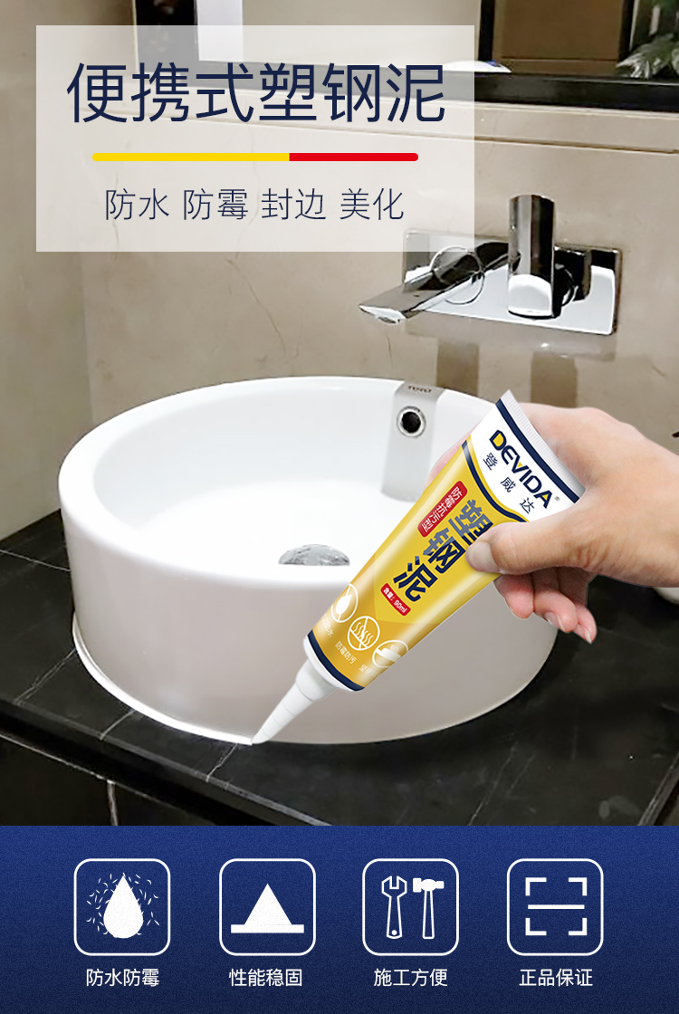 【送6件套】洗手池、马桶、浴缸等封边都能用!防水防霉,告别黑缝隙!厨房卫生间水槽封边塑钢泥,防水防霉告别霉黑缝隙,大容量新款便捷式牙膏状【赠送运费险】