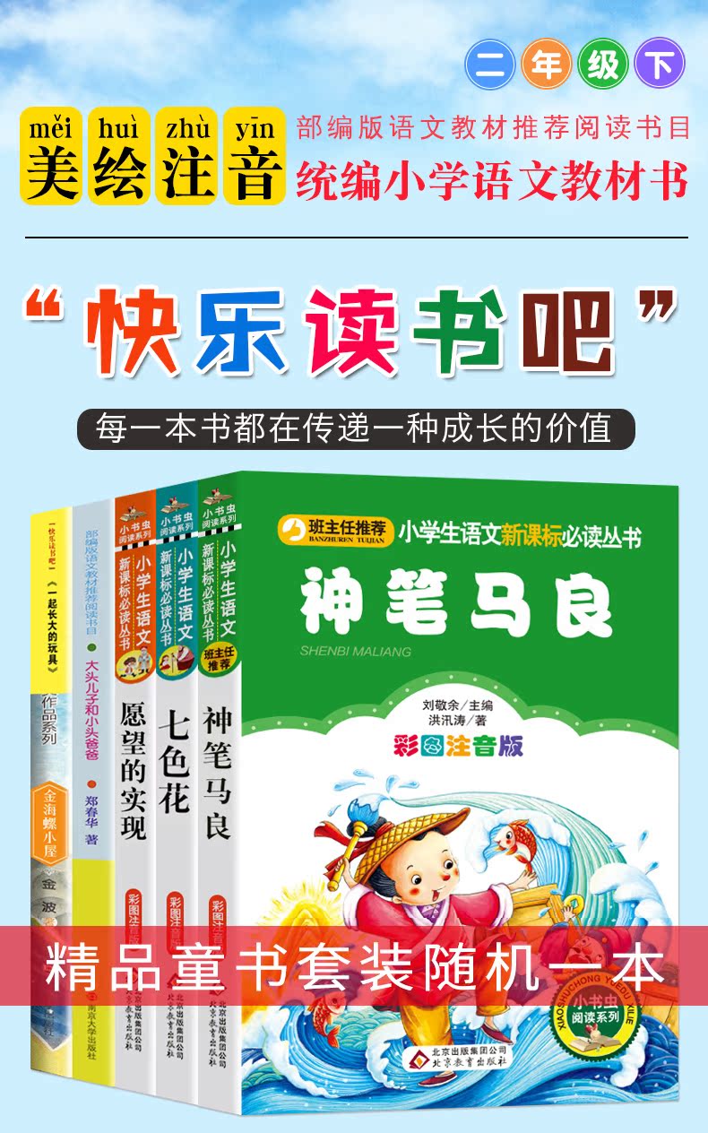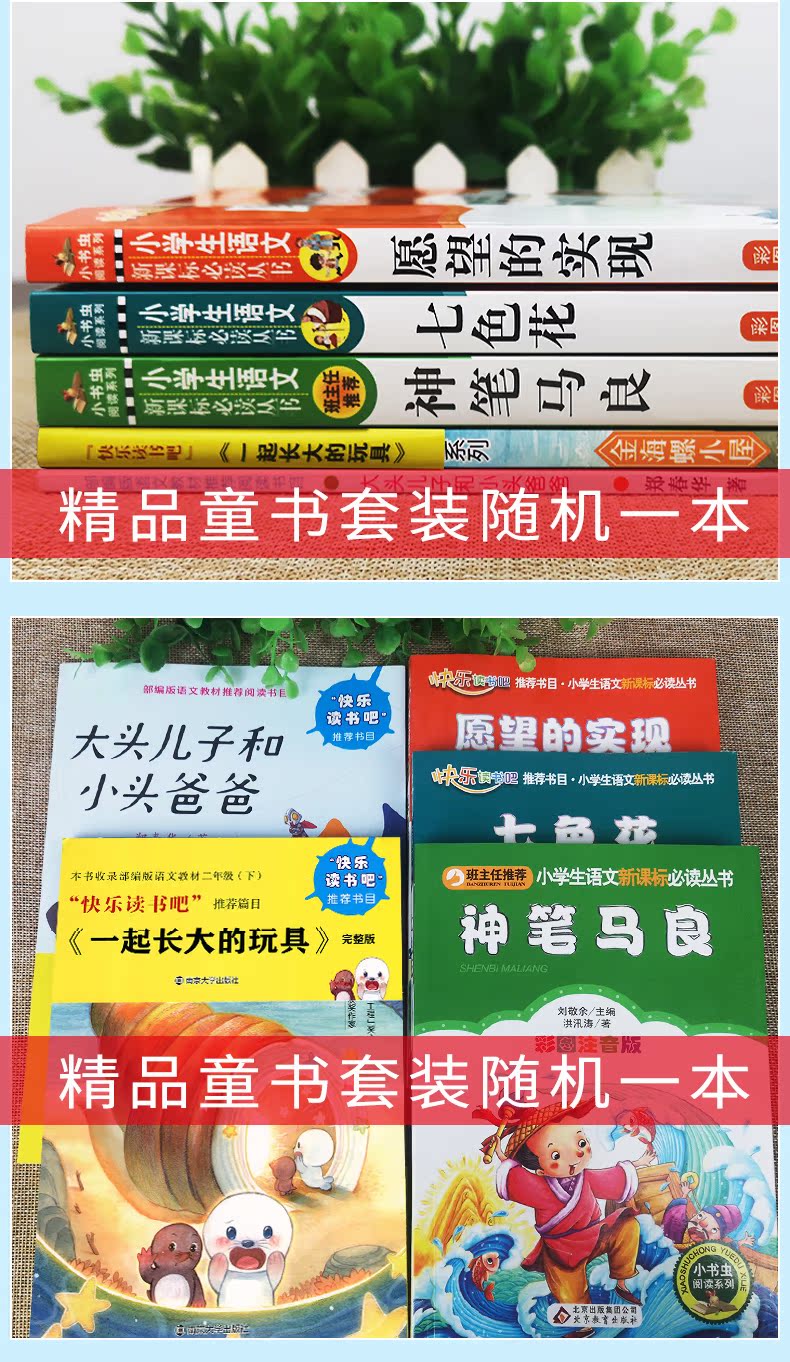 【随机一本】快乐读书神笔马良+大头儿子小头爸爸+愿望的实现+抽陀螺+七色花,二年级必读经典课外书,统编语文教材推荐,彩绘注音版,好书精选,赶快给孩子屯一套