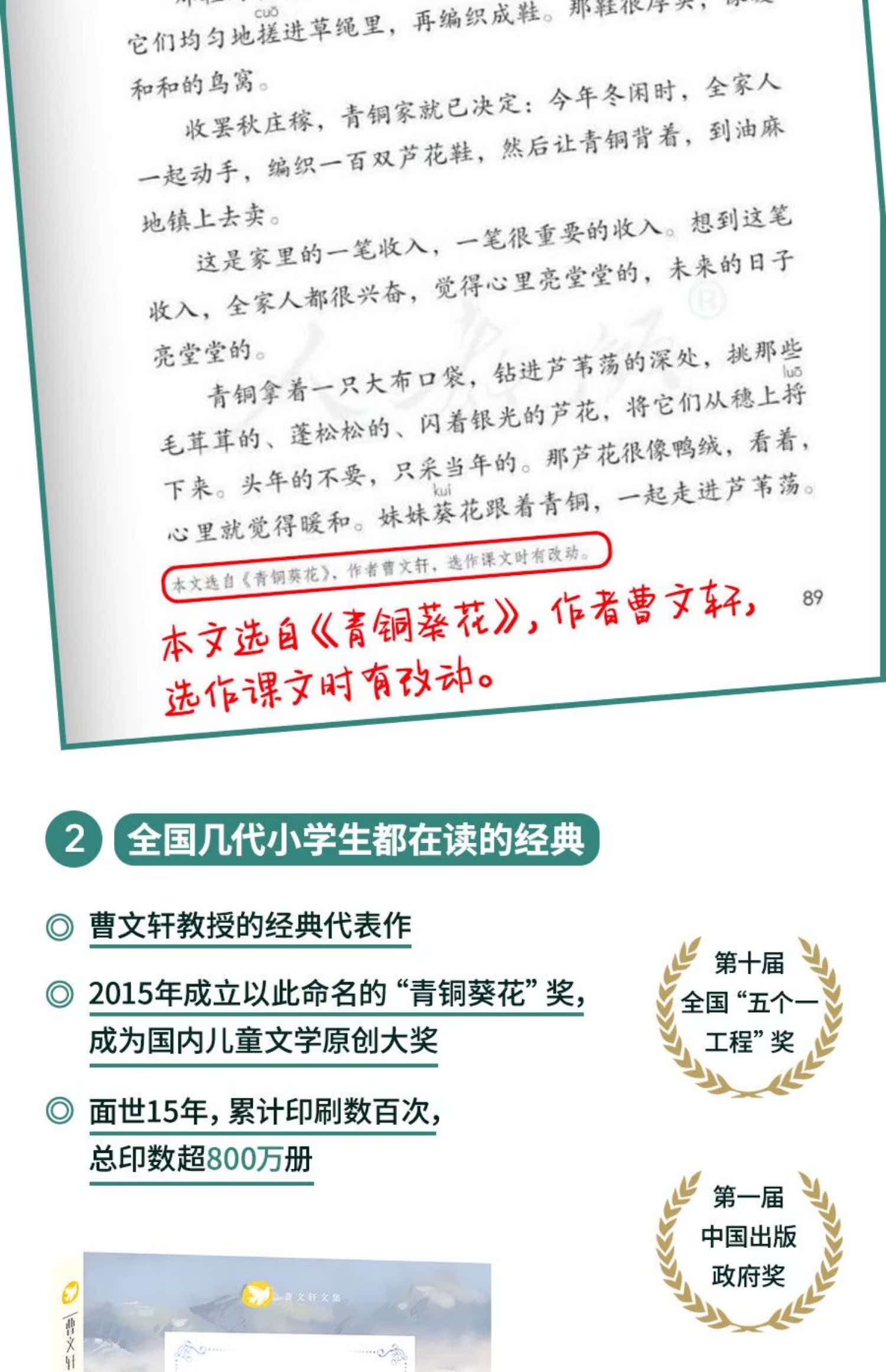 疯抢中!!【学校指定】《青铜葵花》完整版,人教版,入选中小学教材,中国首位国际安徒生奖项得主曹文轩先生经典之作,具有代表性与影响力的儿童文学作品,爱的力量,经典必读。赶紧给孩子屯上~
