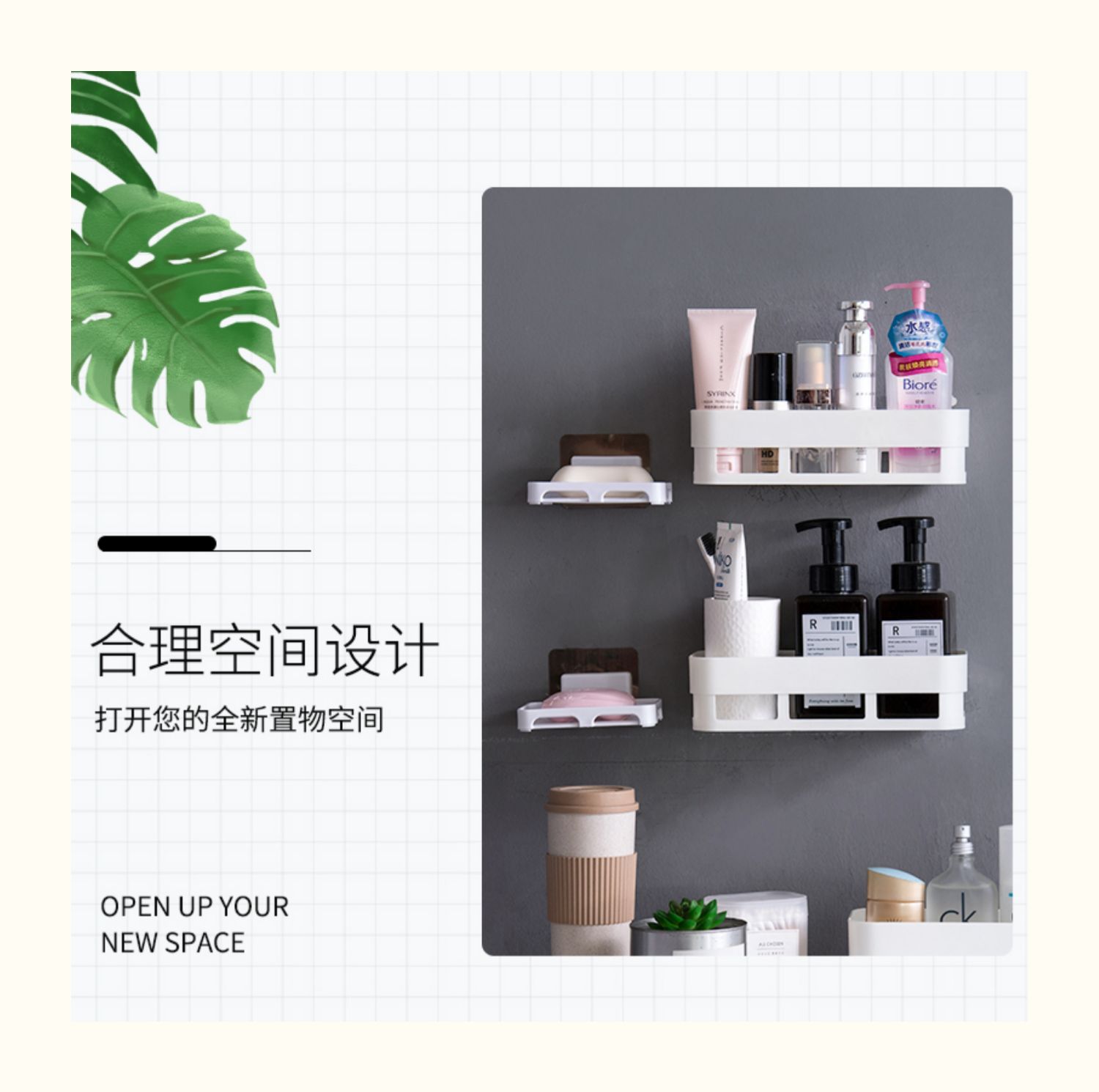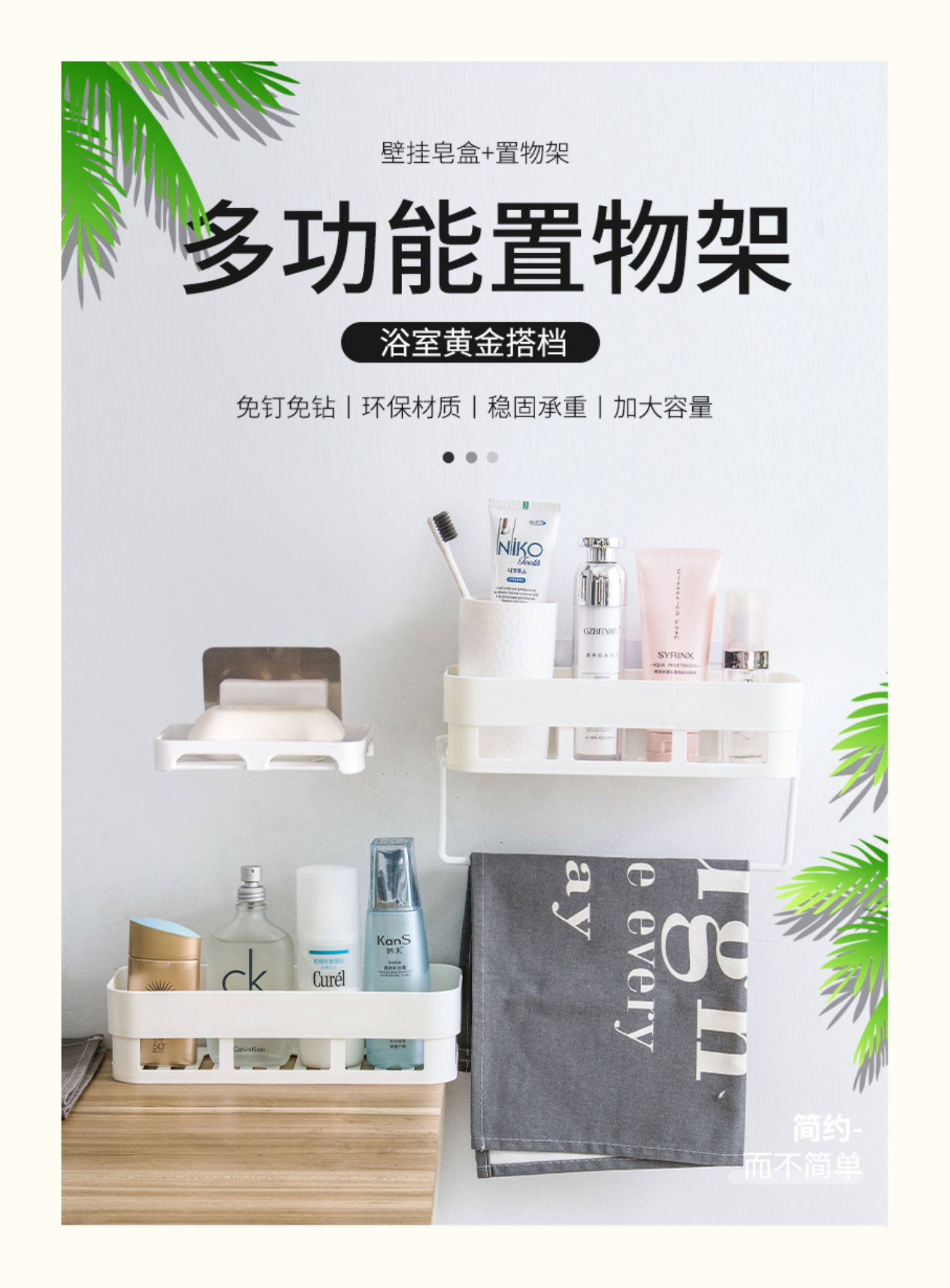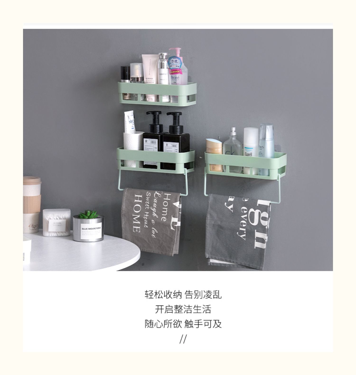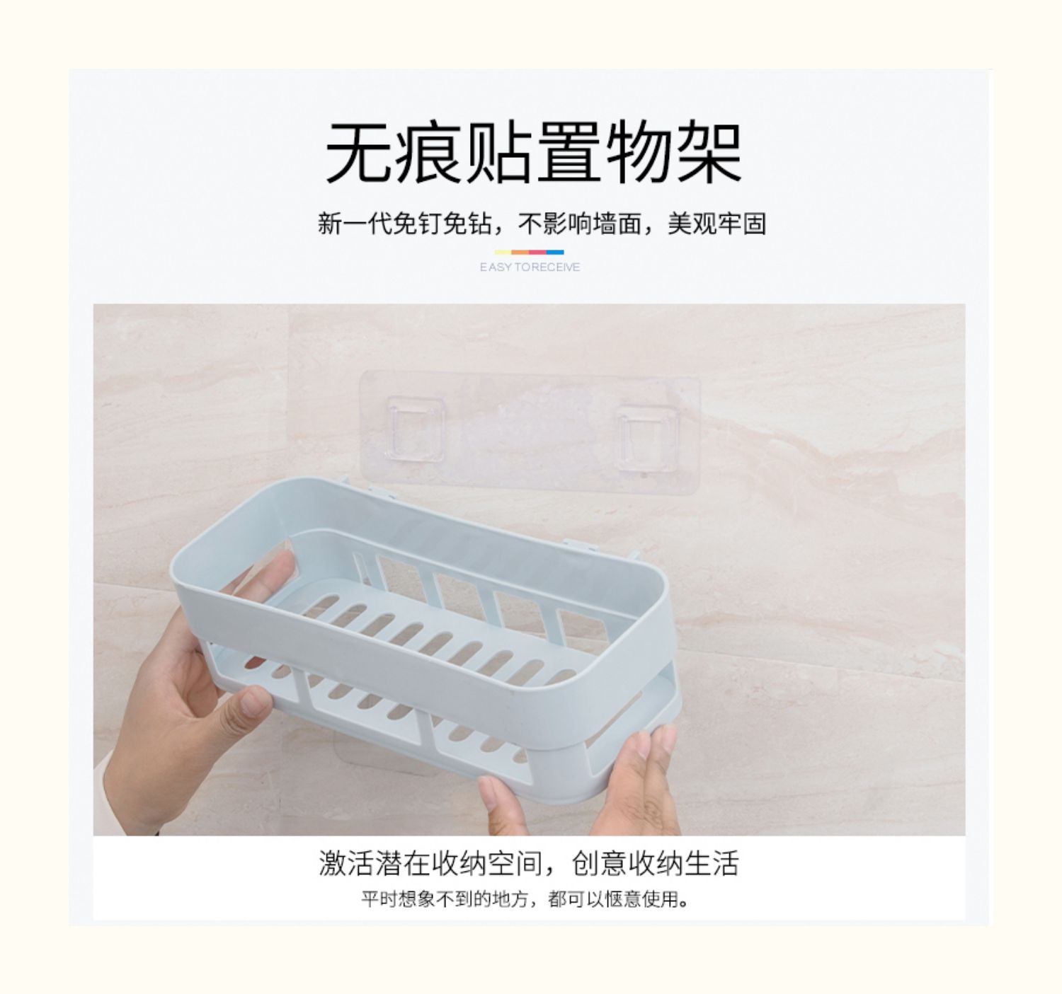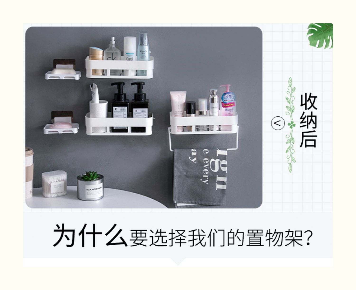 卫生间置物架浴室壁挂免打孔收纳架厕所洗手间塑料卫浴墙上三角架,轻轻一贴就可安装,给您一个干净整洁的家