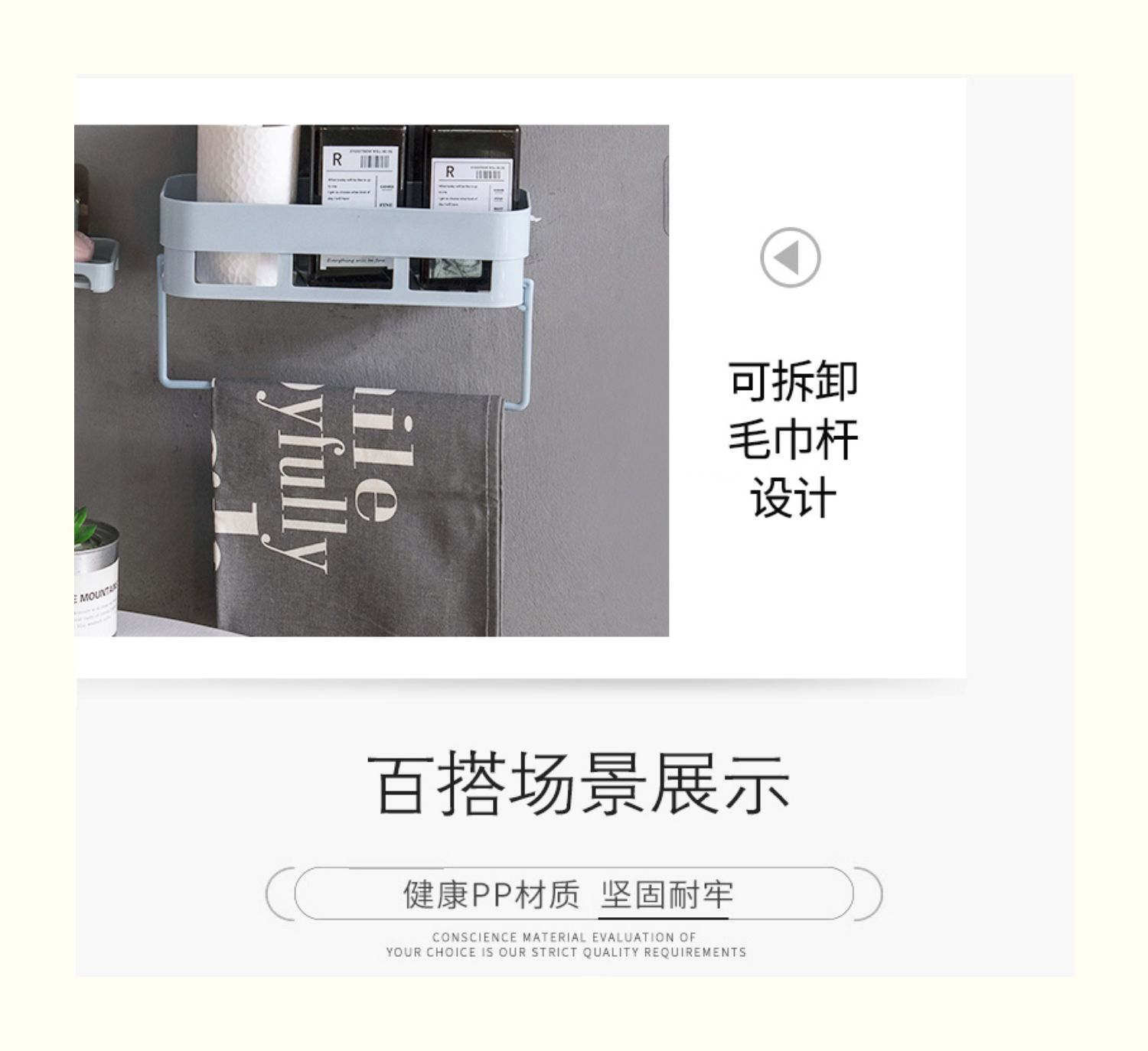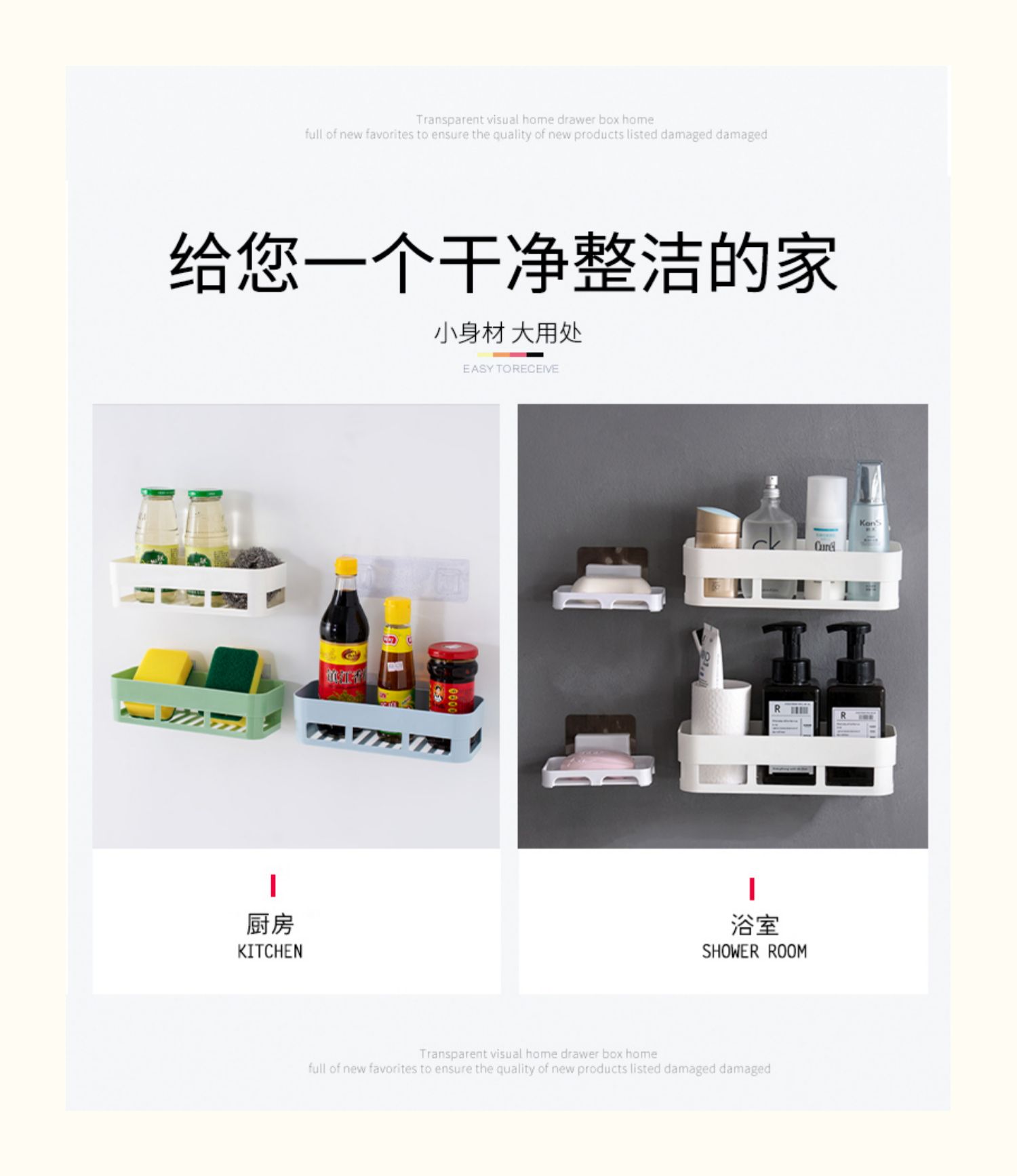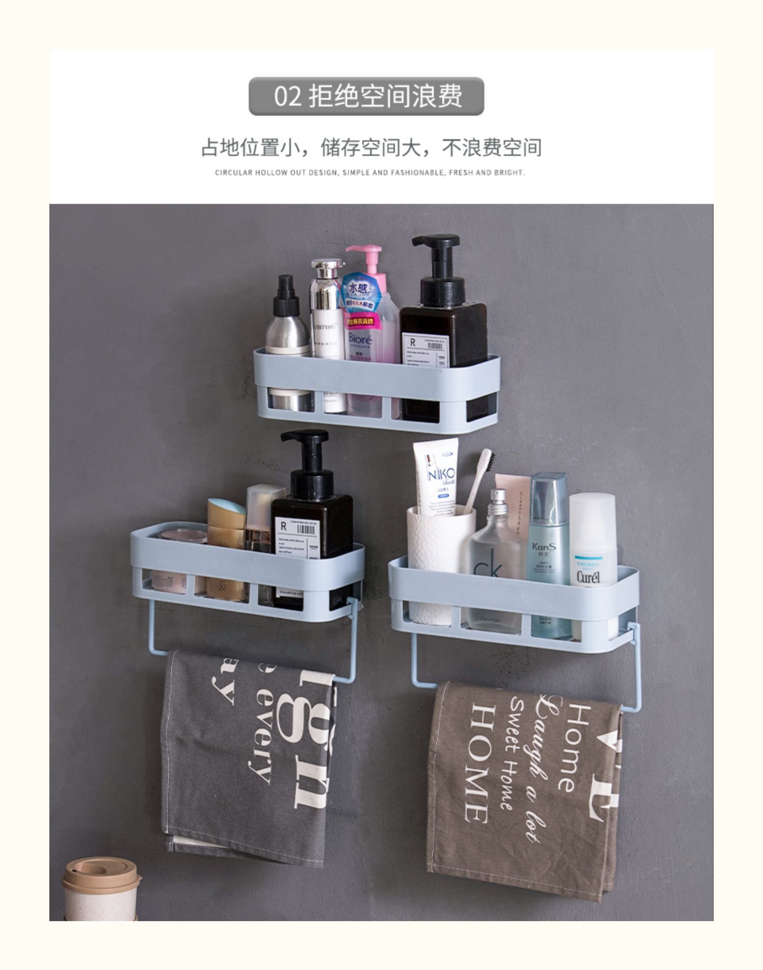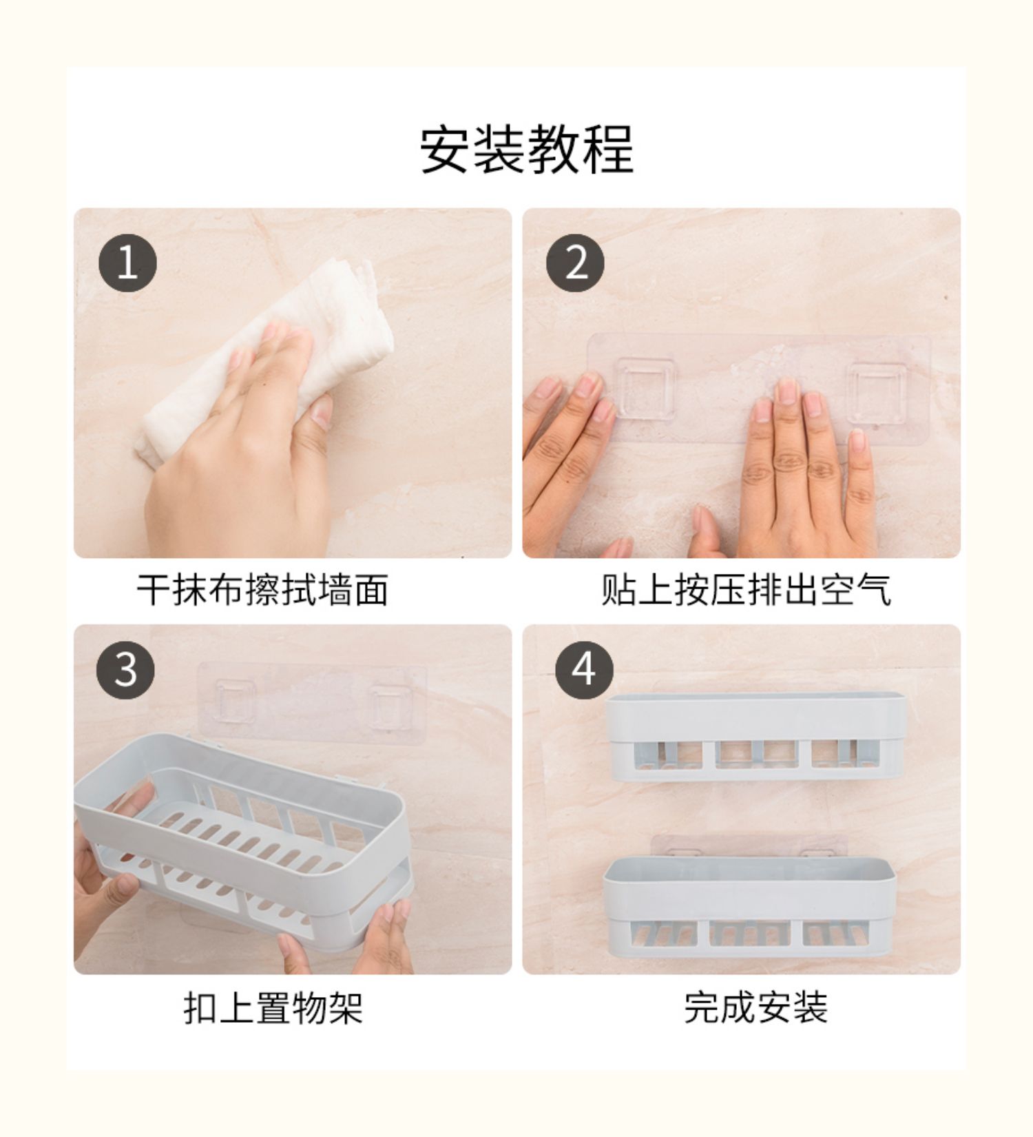 卫生间置物架浴室壁挂免打孔收纳架厕所洗手间塑料卫浴墙上三角架,轻轻一贴就可安装,给您一个干净整洁的家