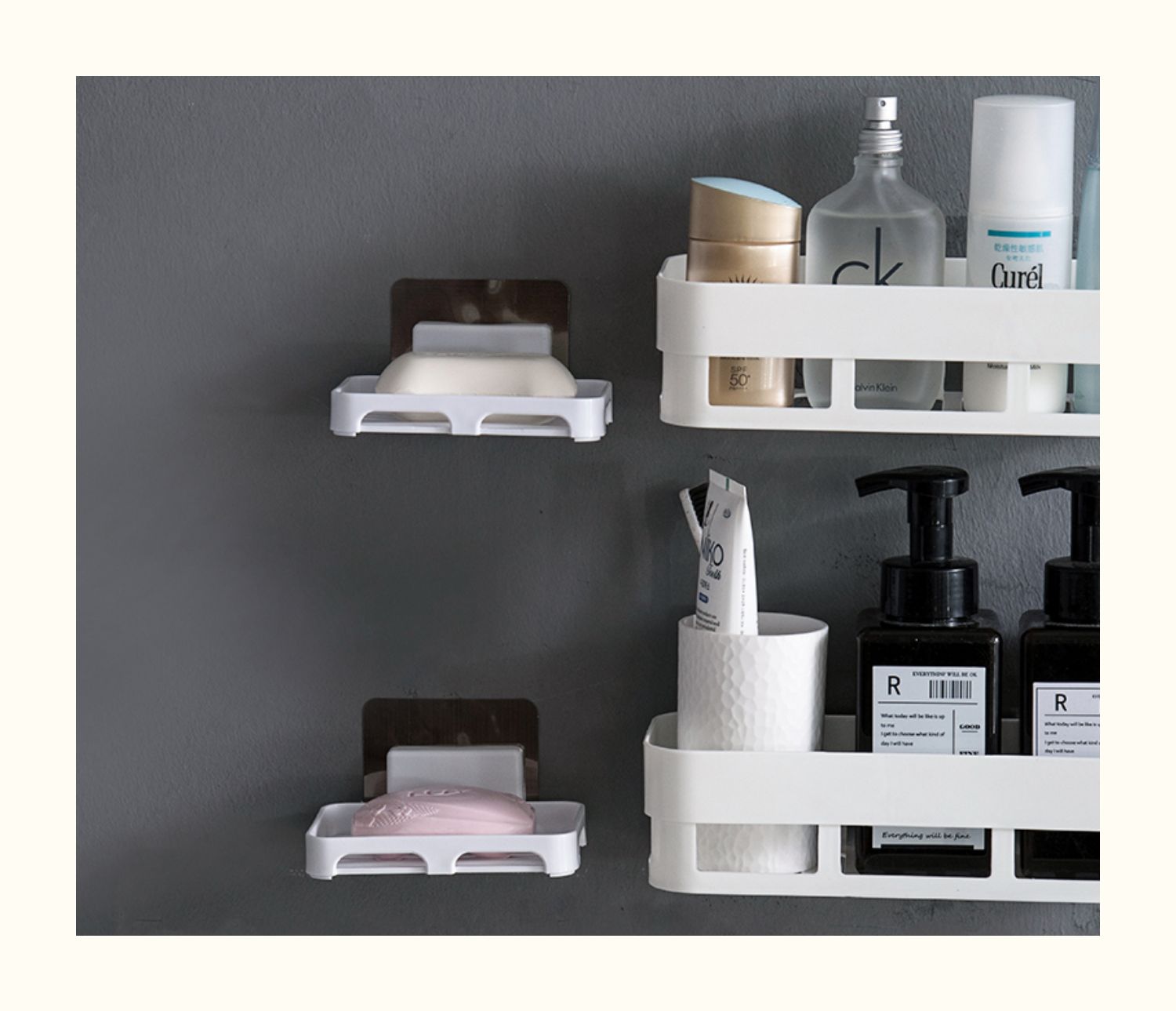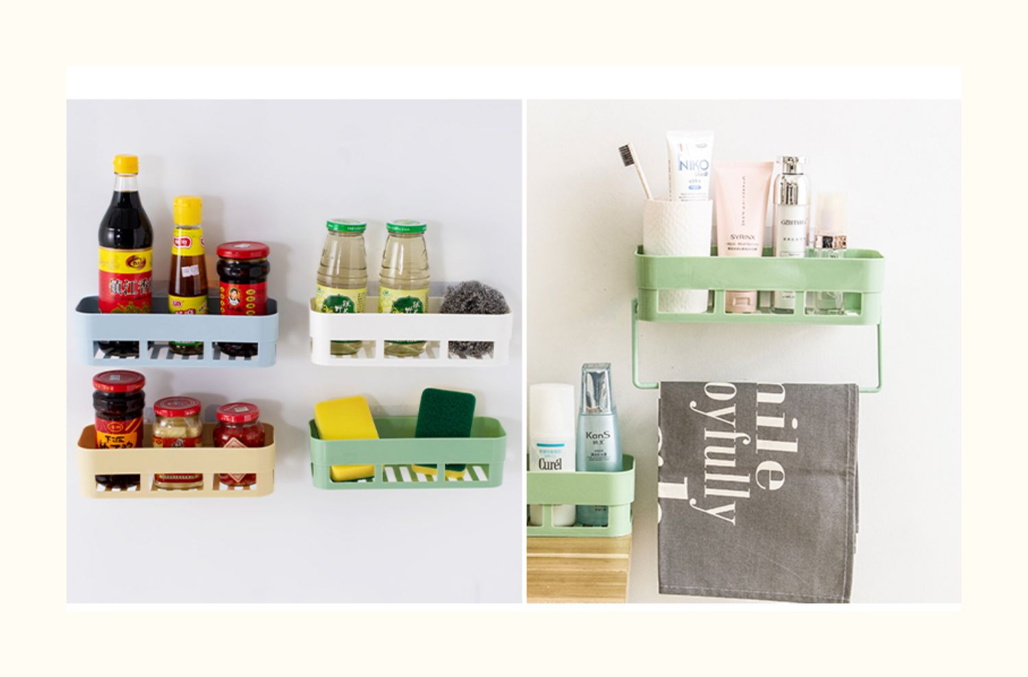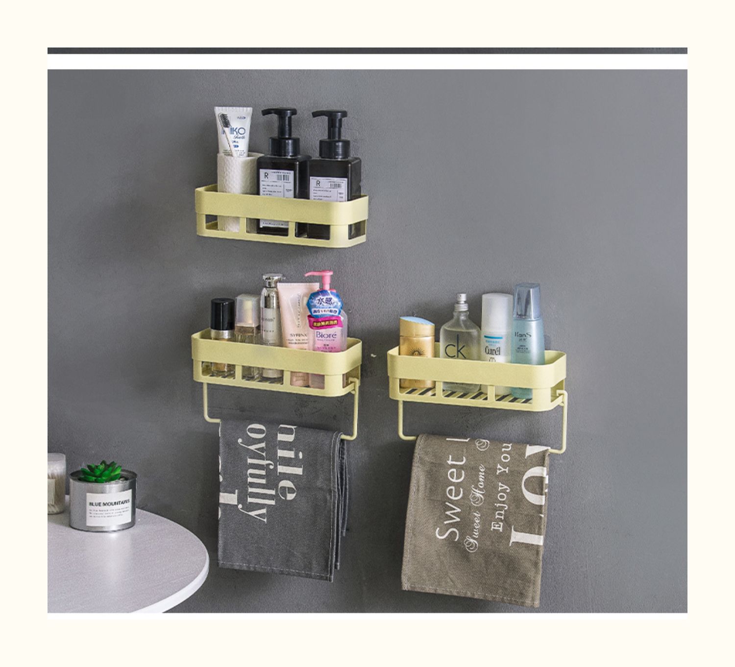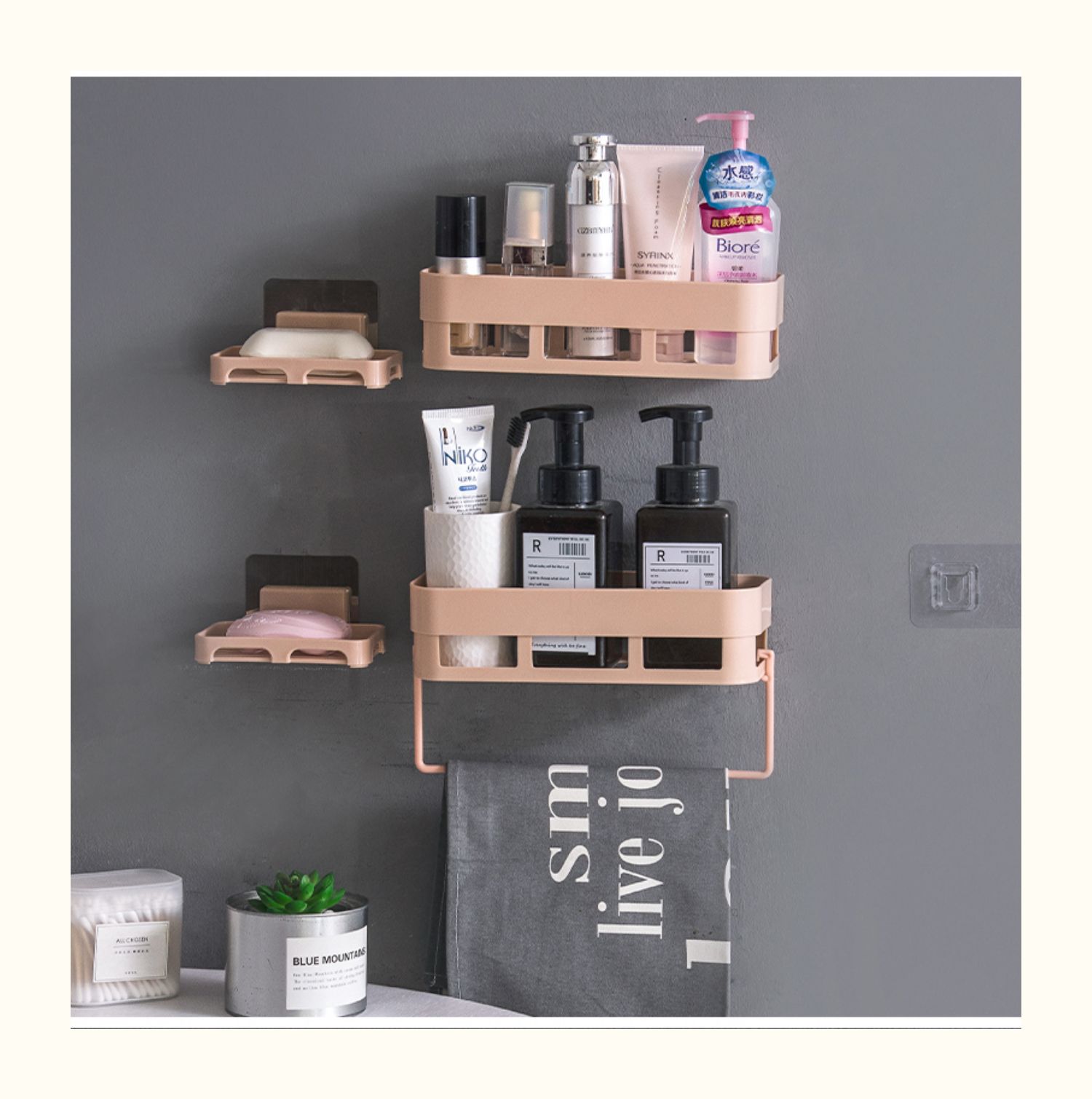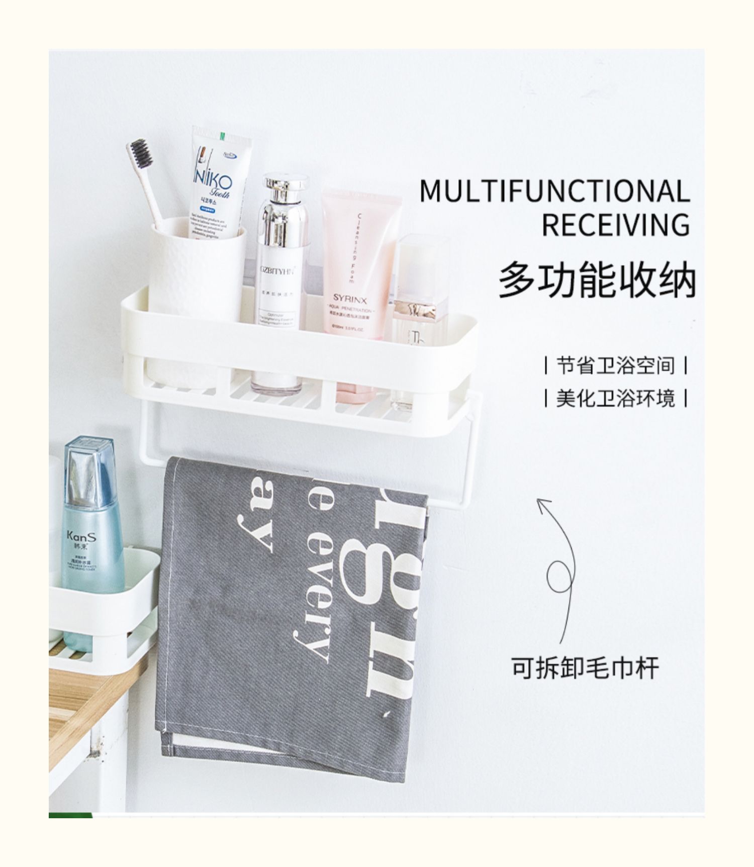 卫生间置物架浴室壁挂免打孔收纳架厕所洗手间塑料卫浴墙上三角架,轻轻一贴就可安装,给您一个干净整洁的家