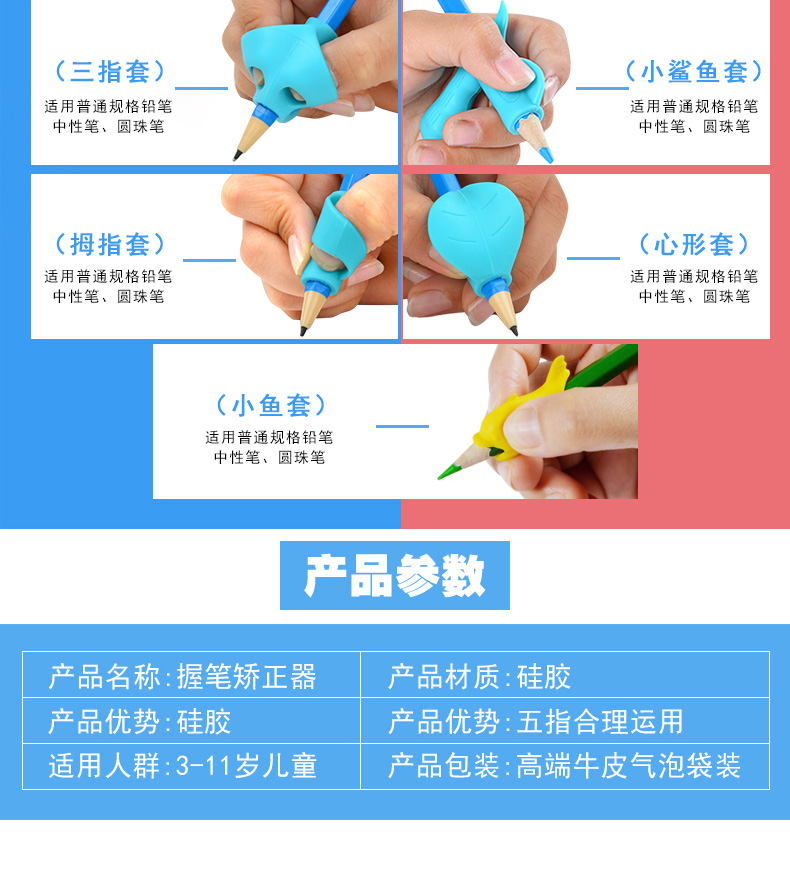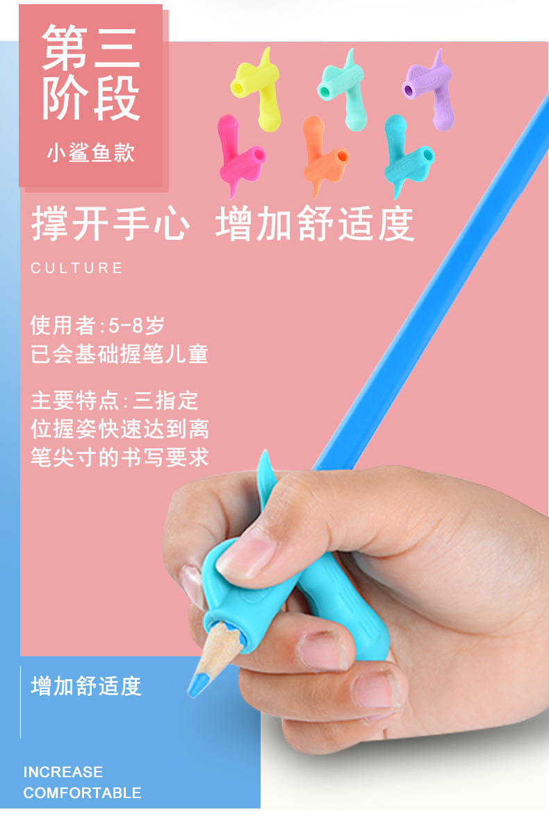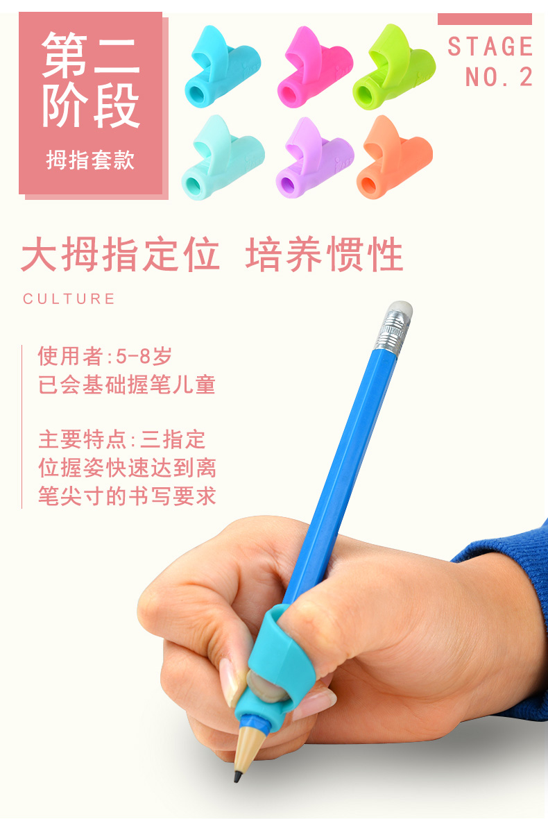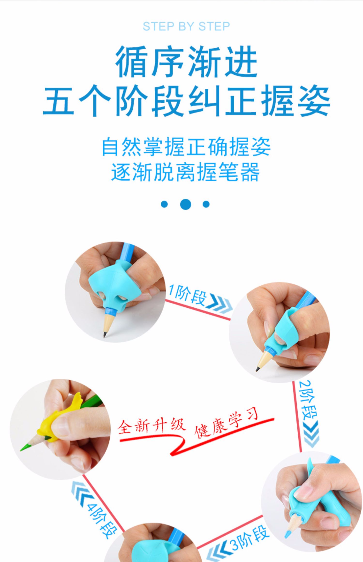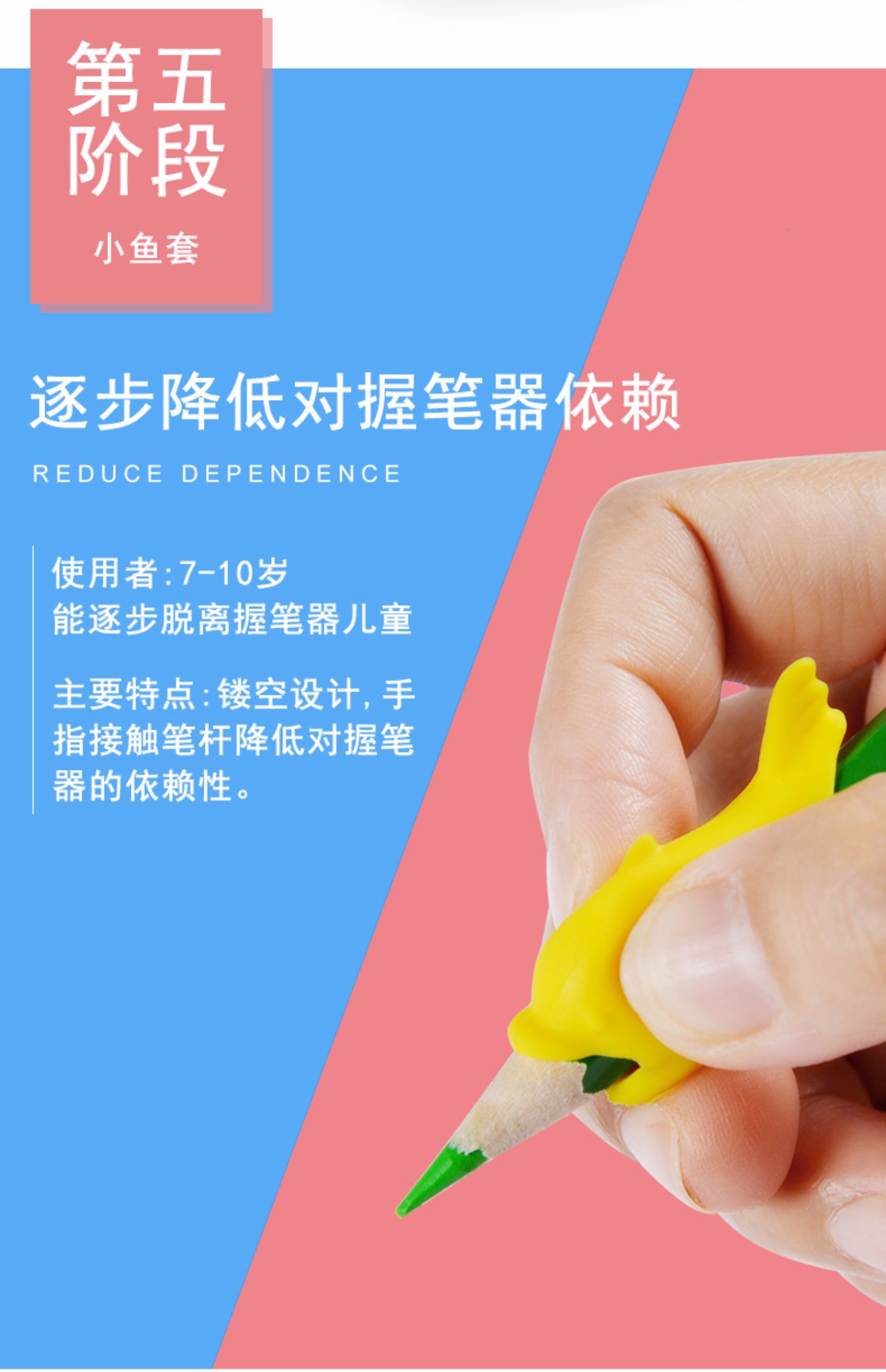 一秒学会握笔柔软硅胶材质阶段纠正效果好,循序渐进,五个阶段矫正握笔。培养自然握笔坚持21天养成好习惯!