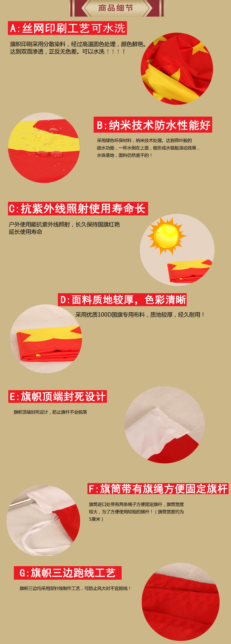 5号纳米防水中国国旗五星红旗
