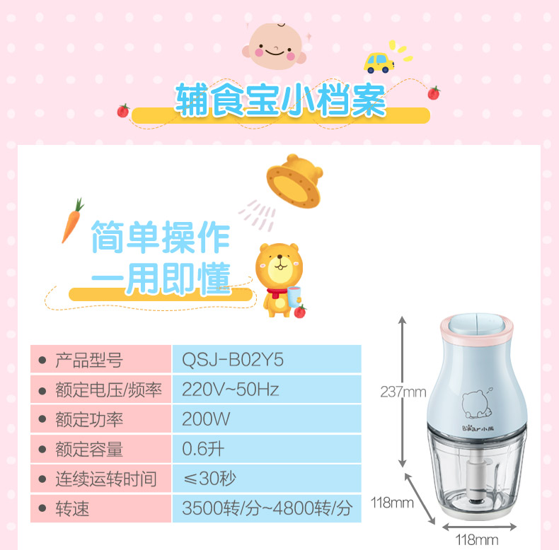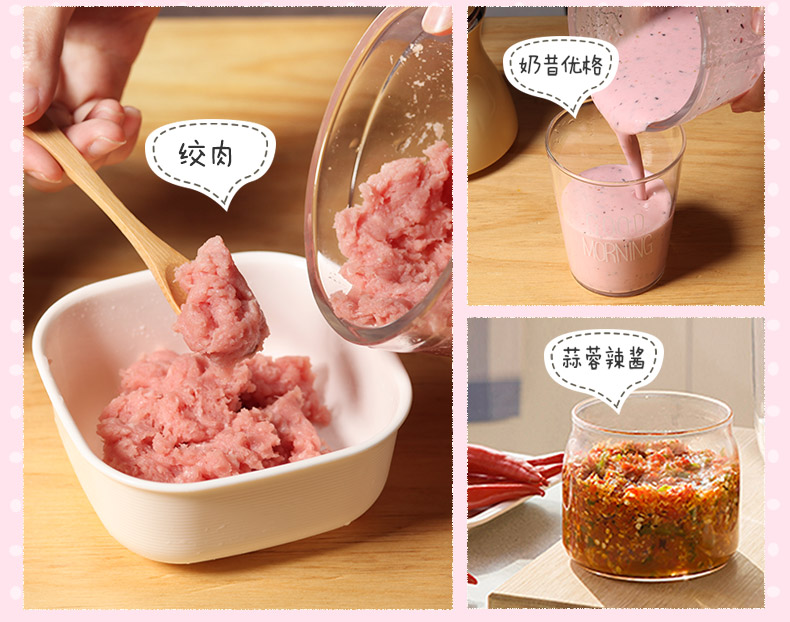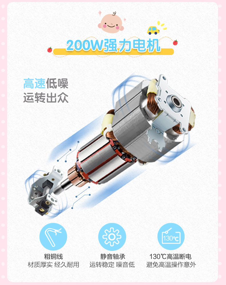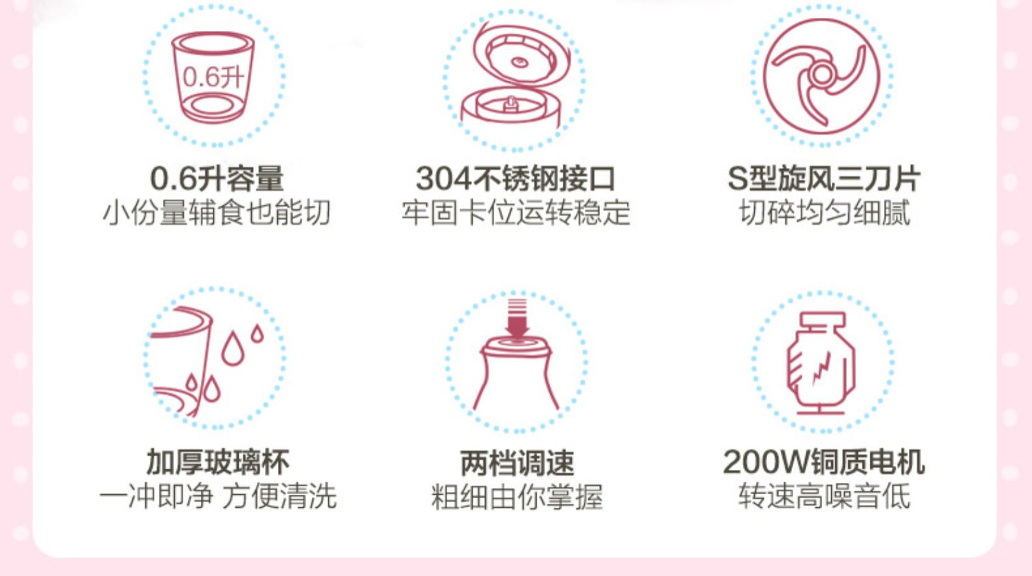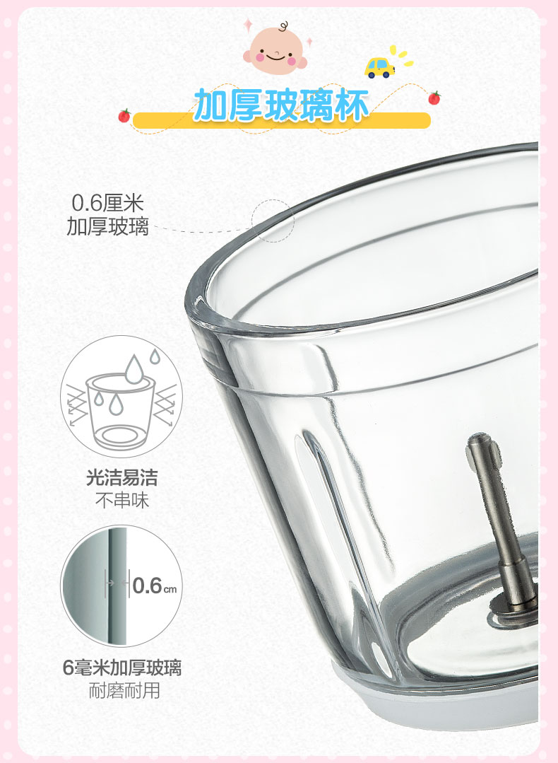 小分量辅食也能切,304不锈钢转接口,S形旋风双切片,加厚玻璃杯,200瓦强力电机,