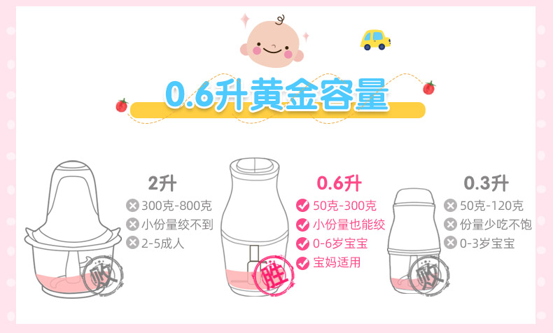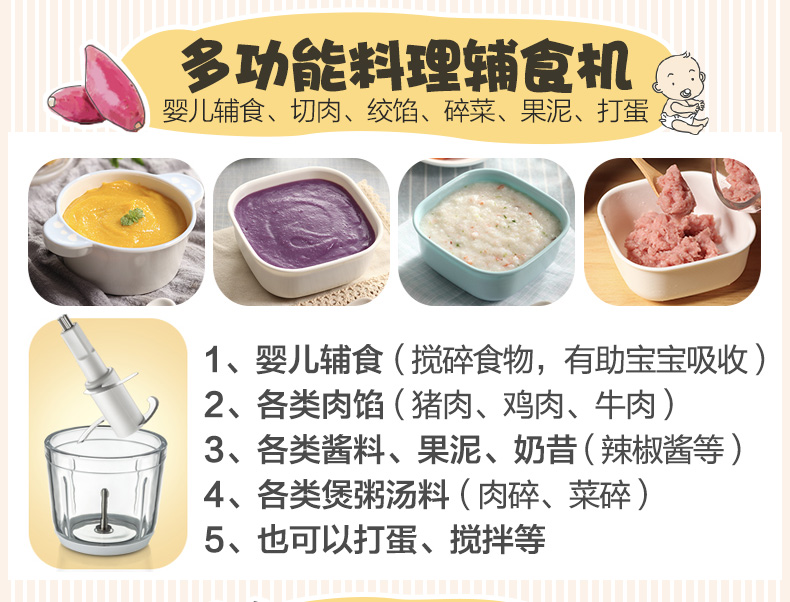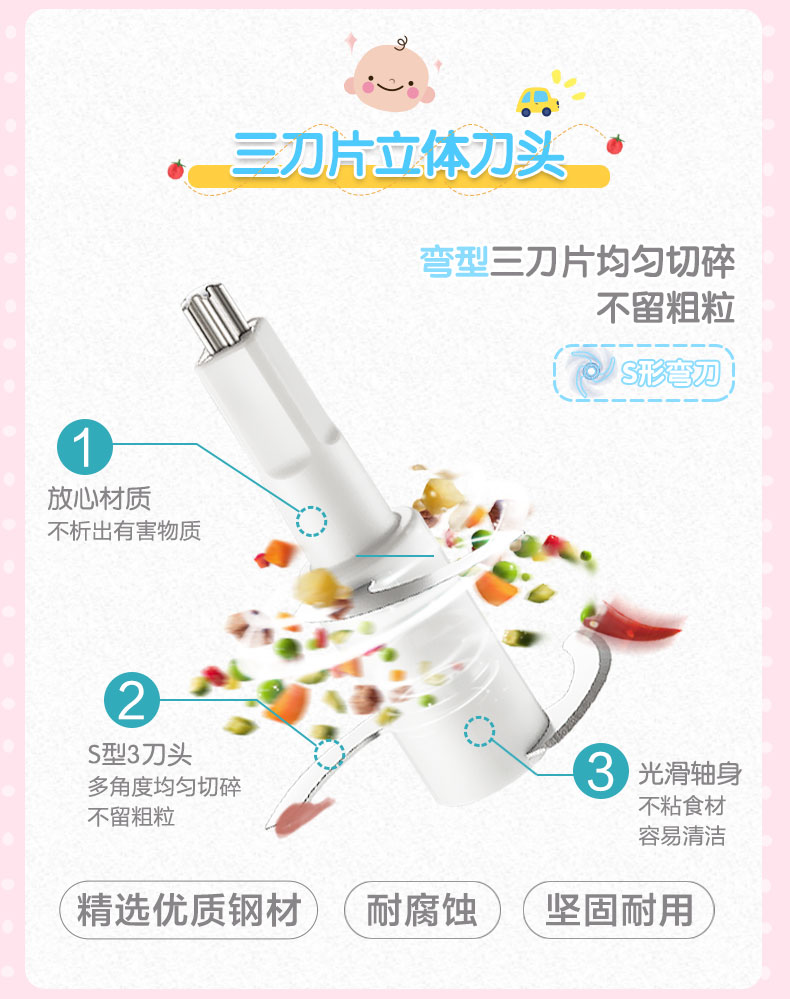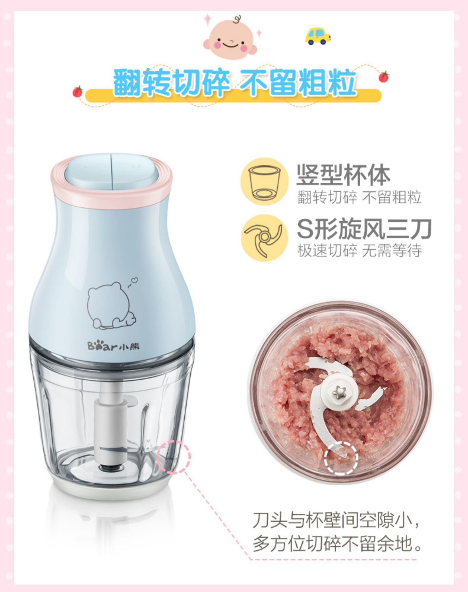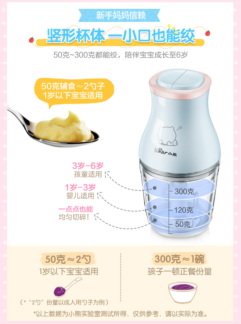 小分量辅食也能切,304不锈钢转接口,S形旋风双切片,加厚玻璃杯,200瓦强力电机,