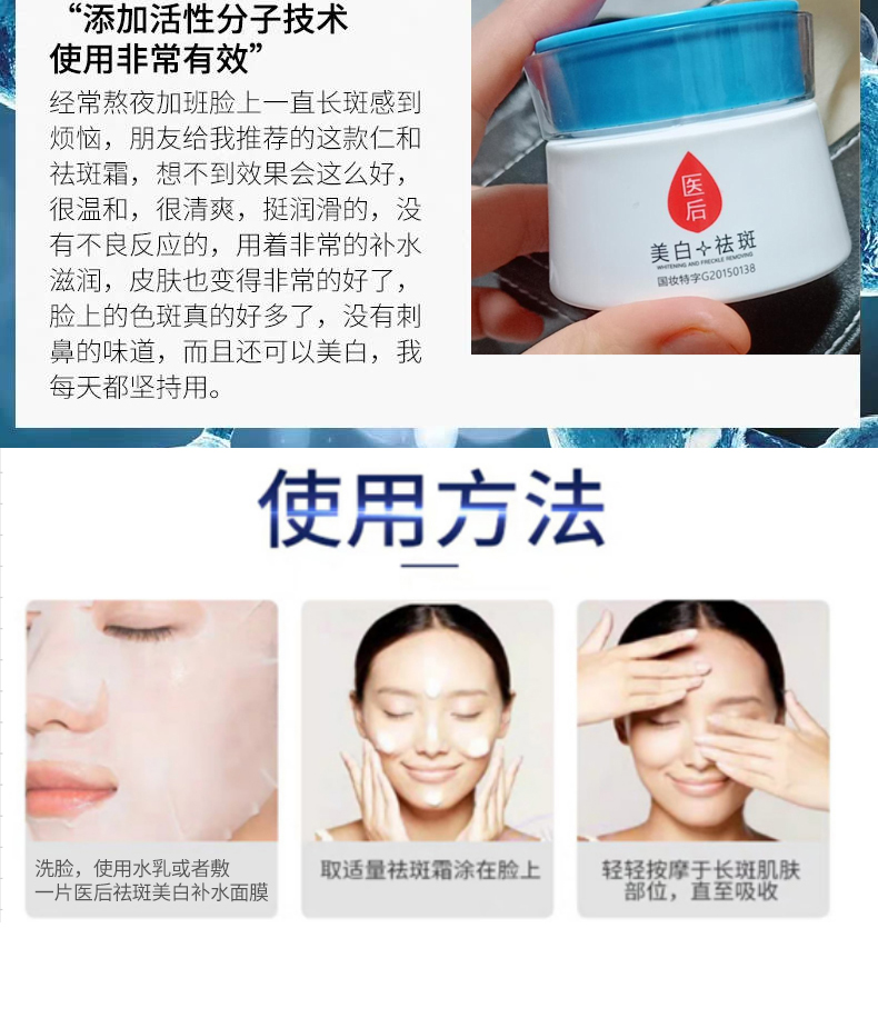 医后美白祛斑霜,13家知名卫视强力推荐医后,祛除色斑,淡化色素,保湿滋养提亮肤色,真人实测祛斑更放心,黄褐斑晒斑都不怕,准妈妈必备!赶紧抢购