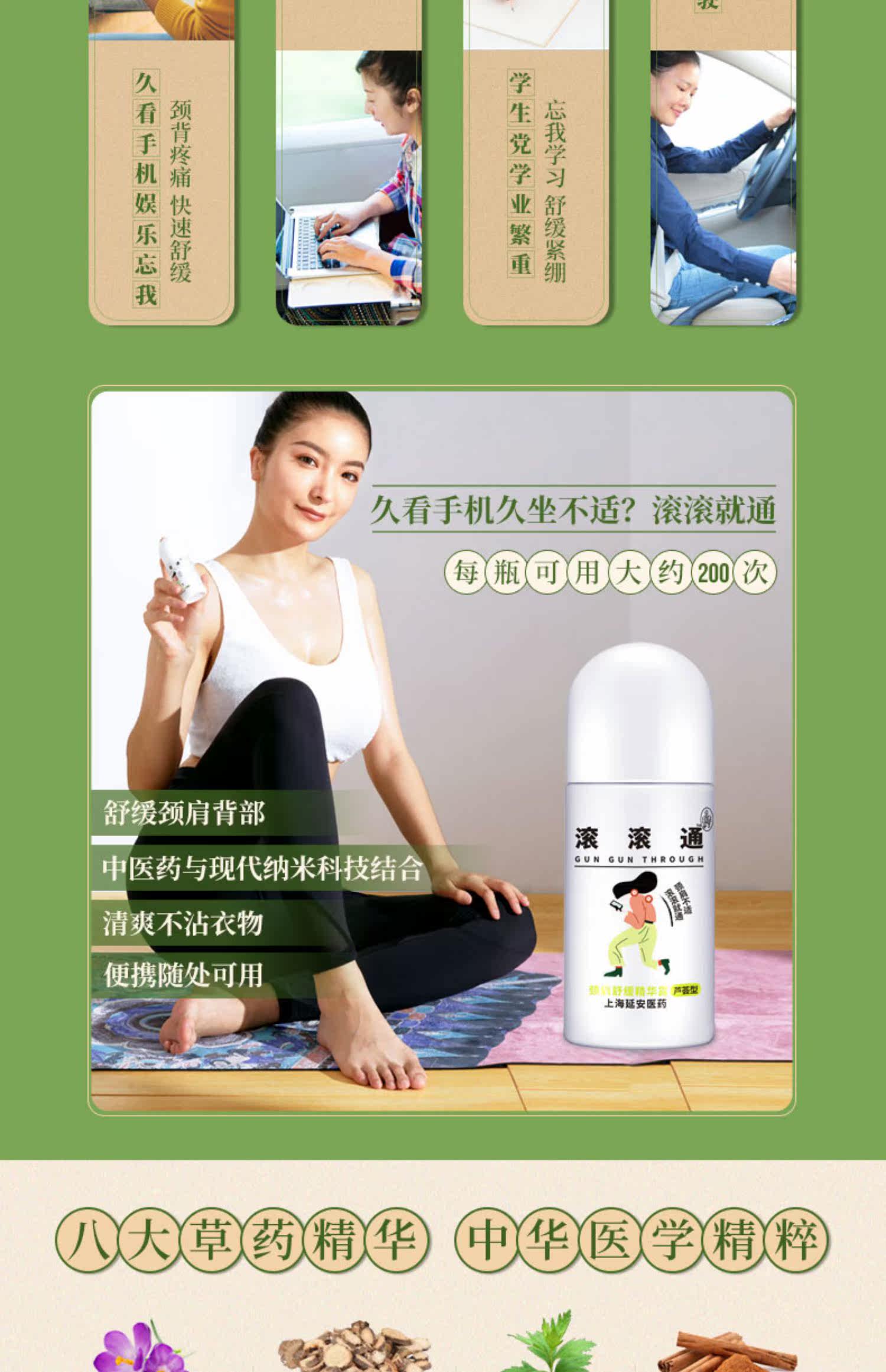【上廷药业】八大草药精华,适合办公族、低头族、久坐、长时间开车,学生党等。颈肩腰腿都可以用,舒缓酸痛紧绷。一滚即舒,还可提神解乏~清爽不黏腻,一瓶大约用200次,小小一个方便携带~