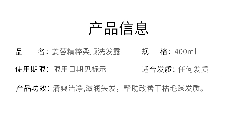 【第二件20元】添加姜蓉精粹,有效养护头皮,疏通毛燥发质,不仅能防脱发,更能使秀发日渐柔顺,重现女神秀发~