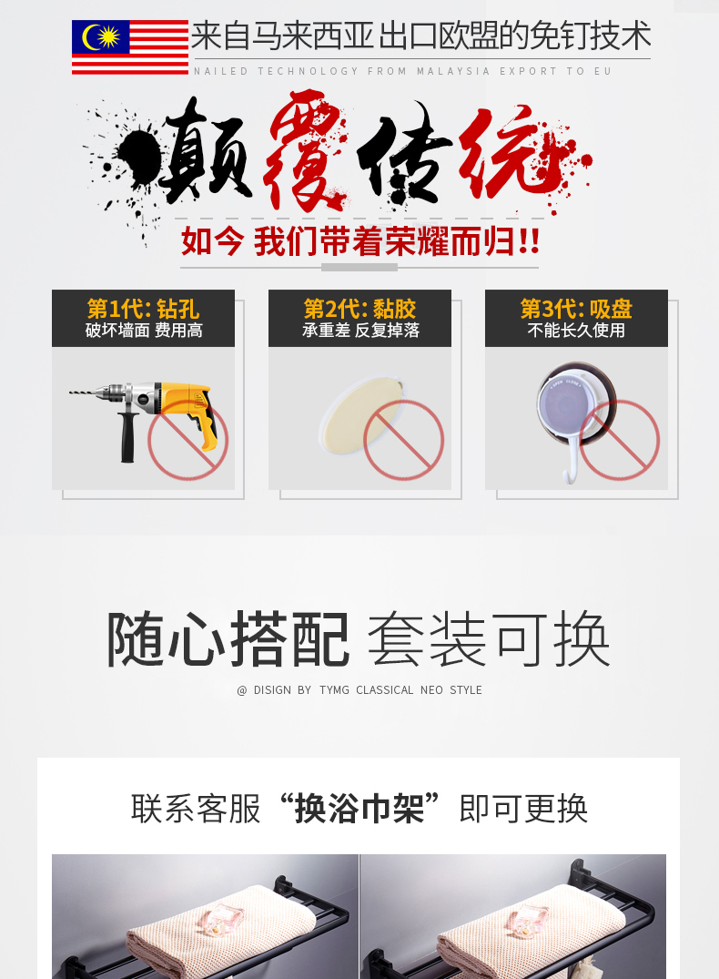 【4.8元秒杀!】免打孔不伤墙,不生锈不褪色,不脱落,卫生间挂杆,现代简约型,防水防潮,经久耐用,承重力强,安装便捷,做工精致,品质卓越!
