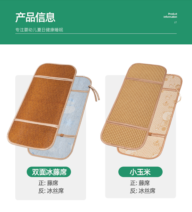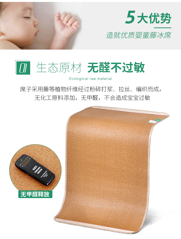婴儿推车透气夏季午睡冰丝藤席子,安全抑菌宝宝放心躺,凉而不冰亲肤透气,生态原材,无醛不过敏,呵护宝宝的每一天!