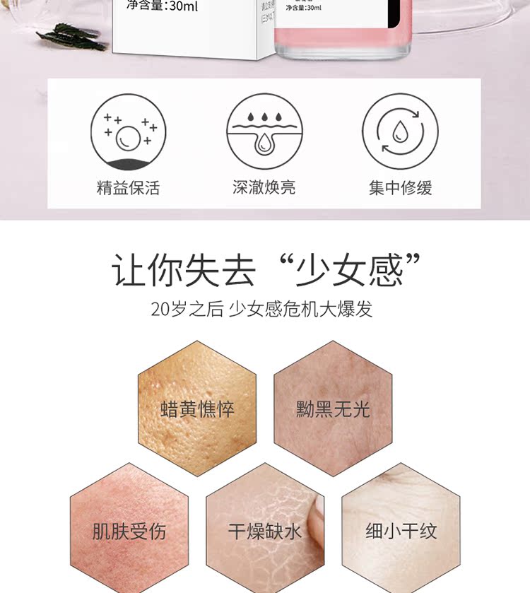 【赠运费险】惊喜价,拍2件只要29!20岁之后细纹越来越多?用法国大牌,法缇丽精华~含水解胎盘素+六胜肽精华,深入补水修护肌底,祛痘淡皱,抗衰老,紧致毛孔,敷出水嫩弹润少女肌!