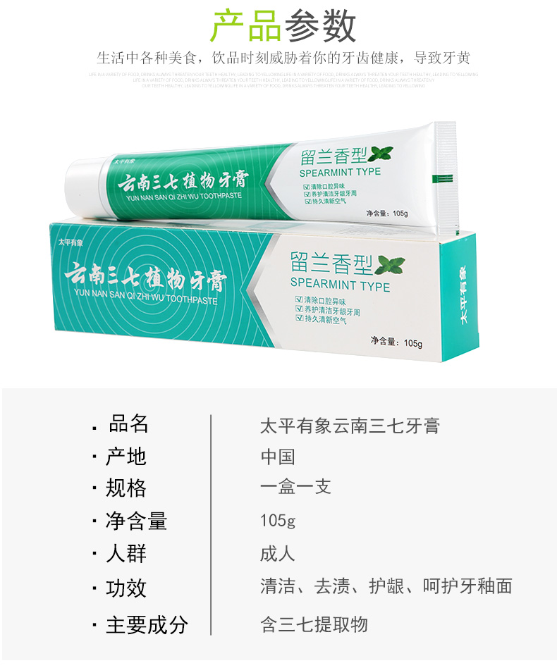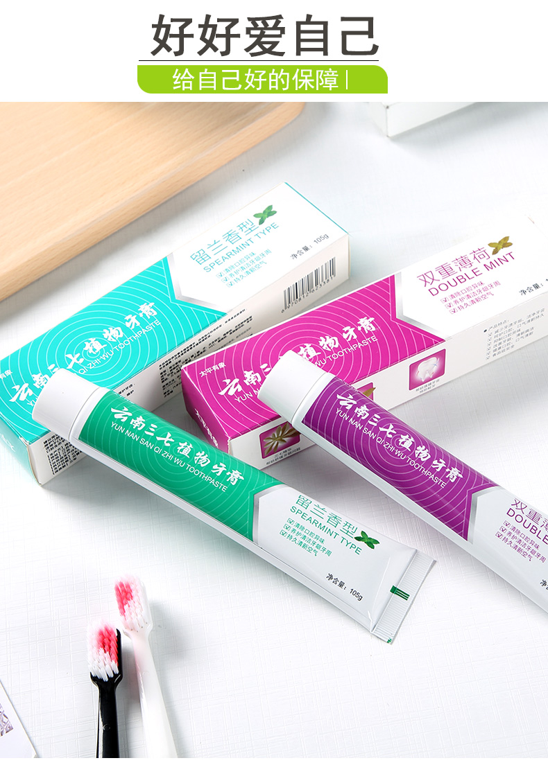 【薄荷+留兰香,两味道】采用云南三七植物精华,有力强健牙龈,舒缓牙龈肿痛、出血等问题!每天刷一刷,让牙齿健康保持到80岁!