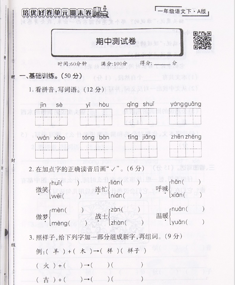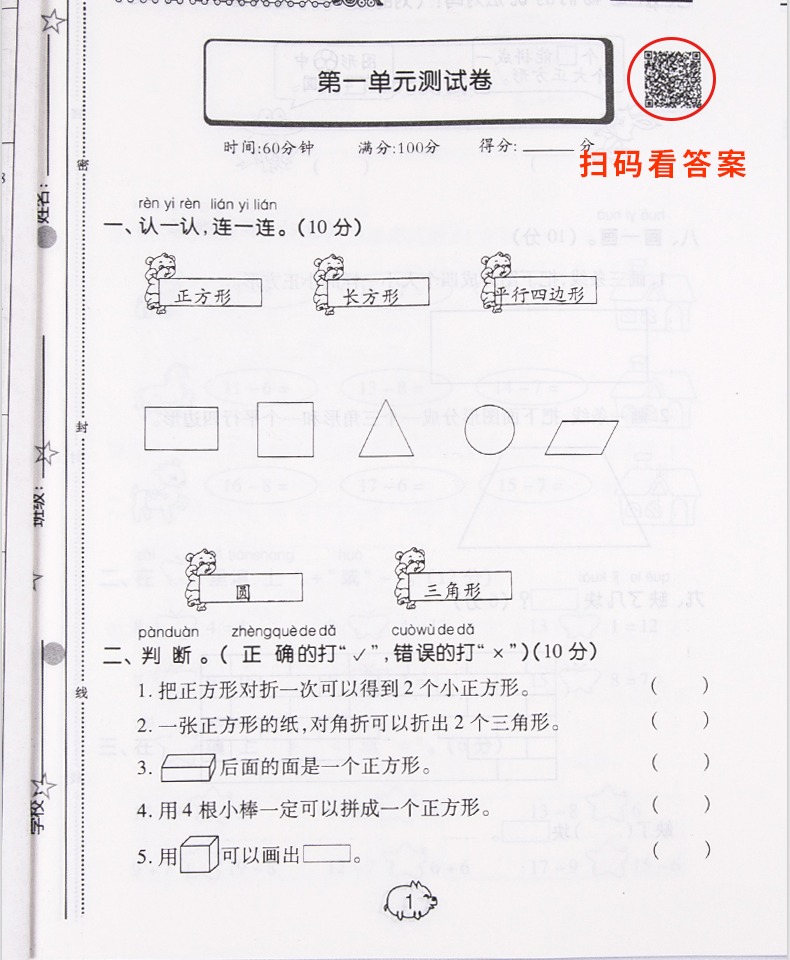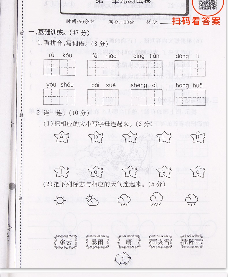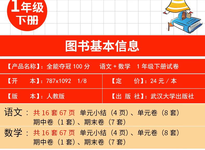 【送2本作业本】小学一年级下单元测试卷,2020新版人教,同步教材,直击考点,提前预习,巩固复习,在家的同时不耽误学习!快快选购吧!【赠运费险】