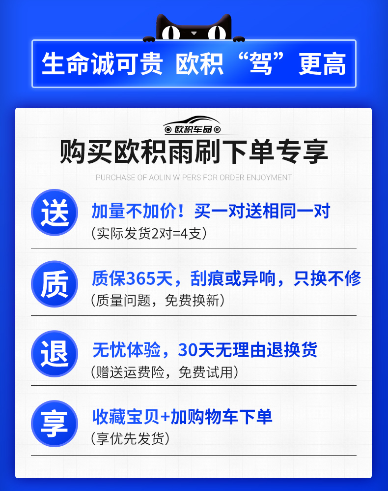 【一对装】血亏冲量价,【通用99%车型,拍下备注车型+年份】,厂家原装直销,无骨雨刷,专用胶条,更高清,更静音,更耐用,老司机必备之选!【赠运费险】