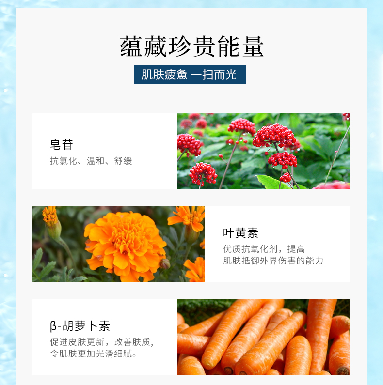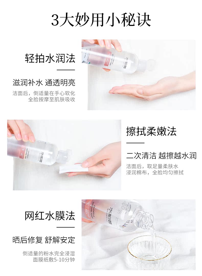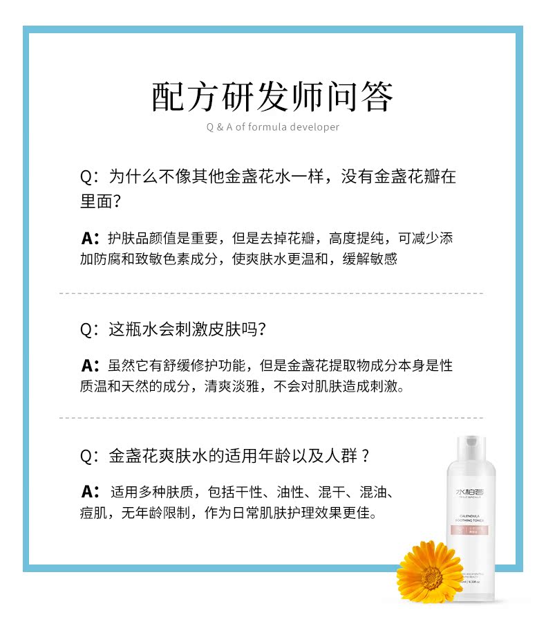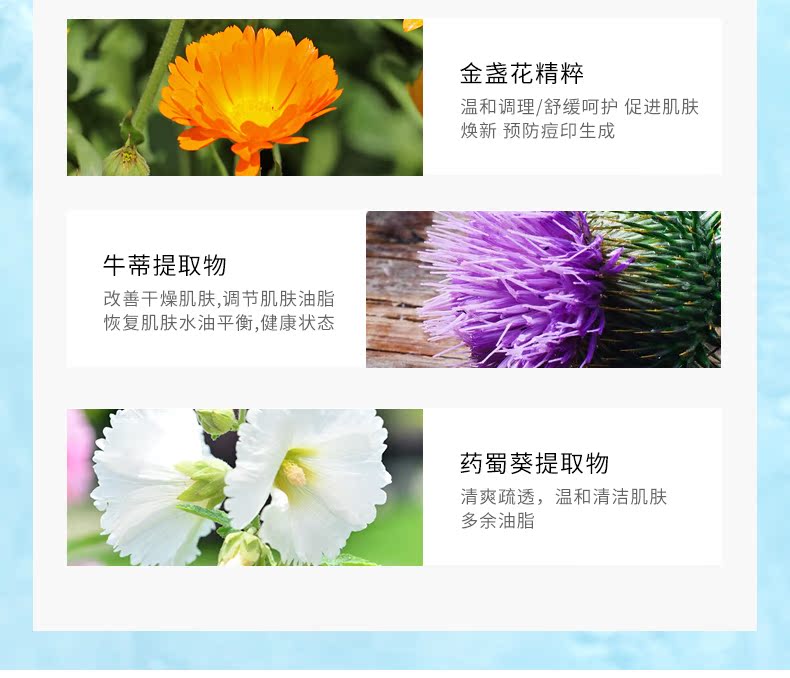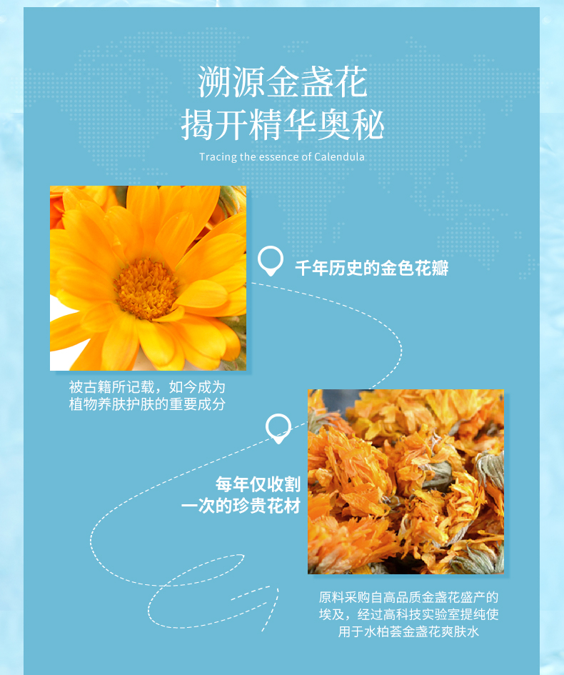 水柏荟金盏花爽肤水,纯植物提取温和透亮让您再现水光肌,只需一瓶,拯救痘痘肌,舒缓敏感肌,修复皮肤,质地清爽。
