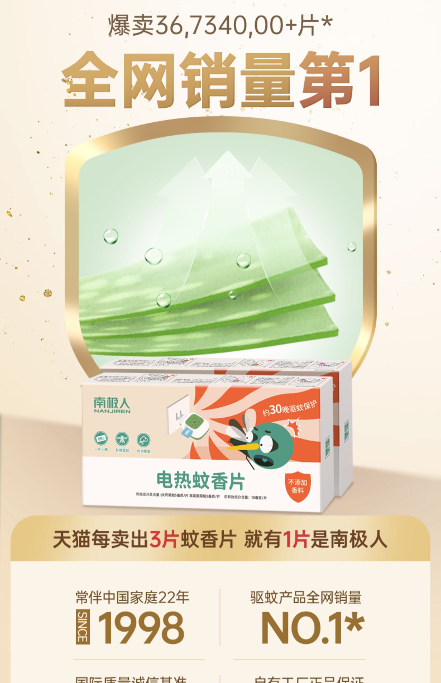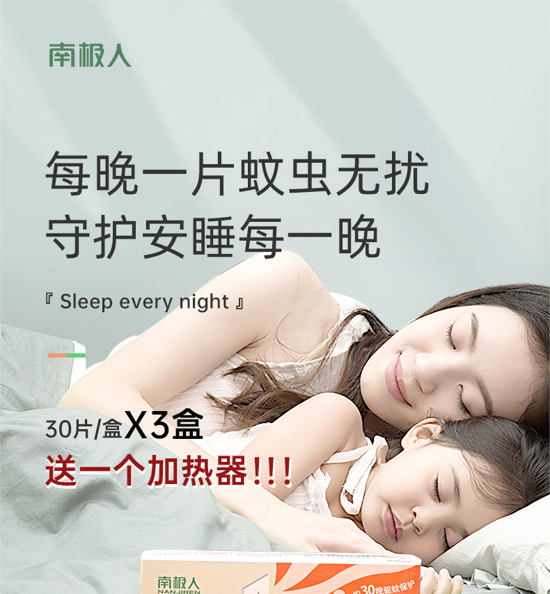 【赠运费险】销量破3673W+片,赶走蚊虫骚扰,快囤个南极人电热蚊香片90片+1器!采用法国进口配方,无香不刺鼻,让宝宝和妈咪畅快呼吸~1片安睡一整晚,90片能用3个月~活动仅9.9,抢!