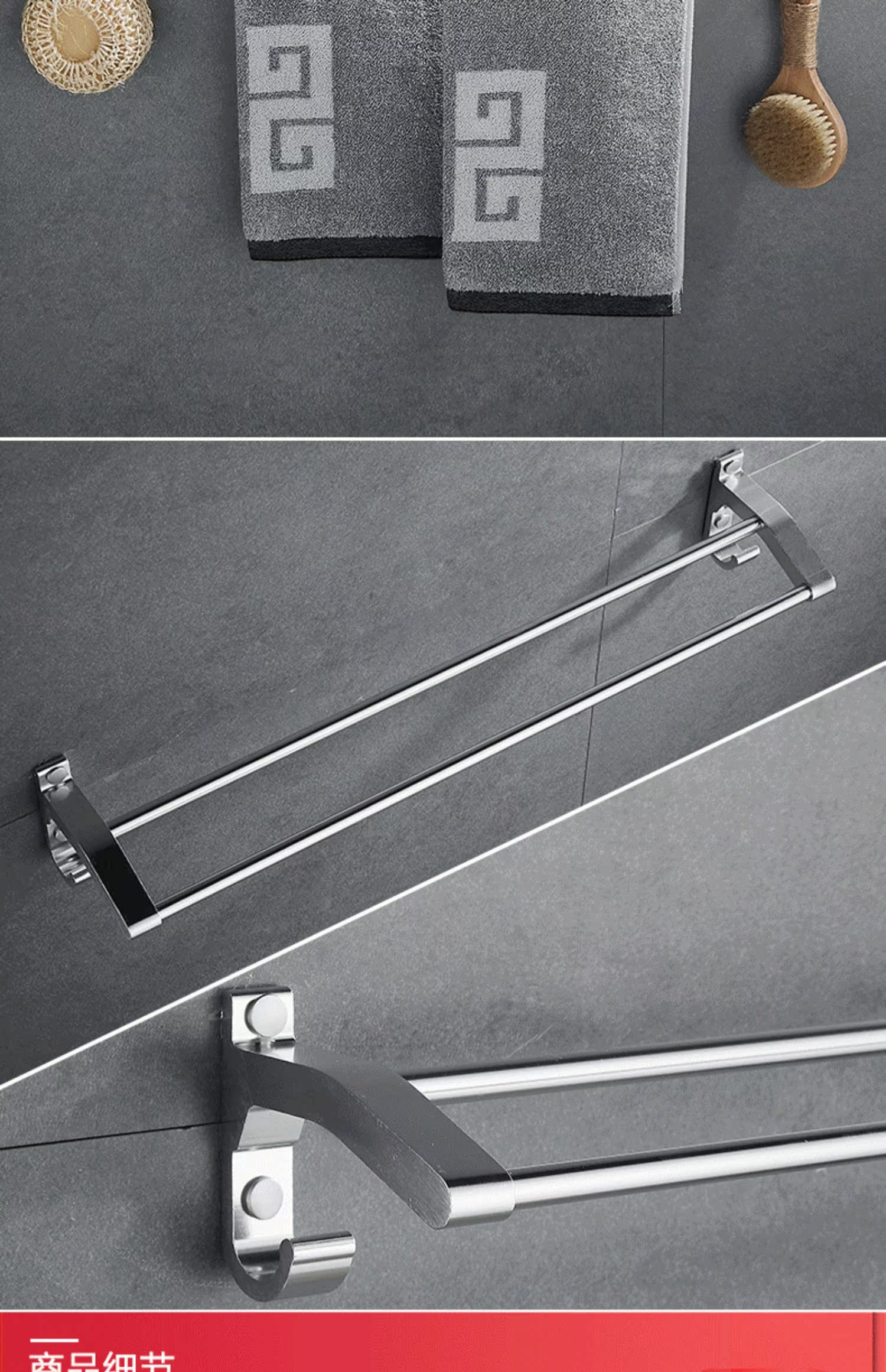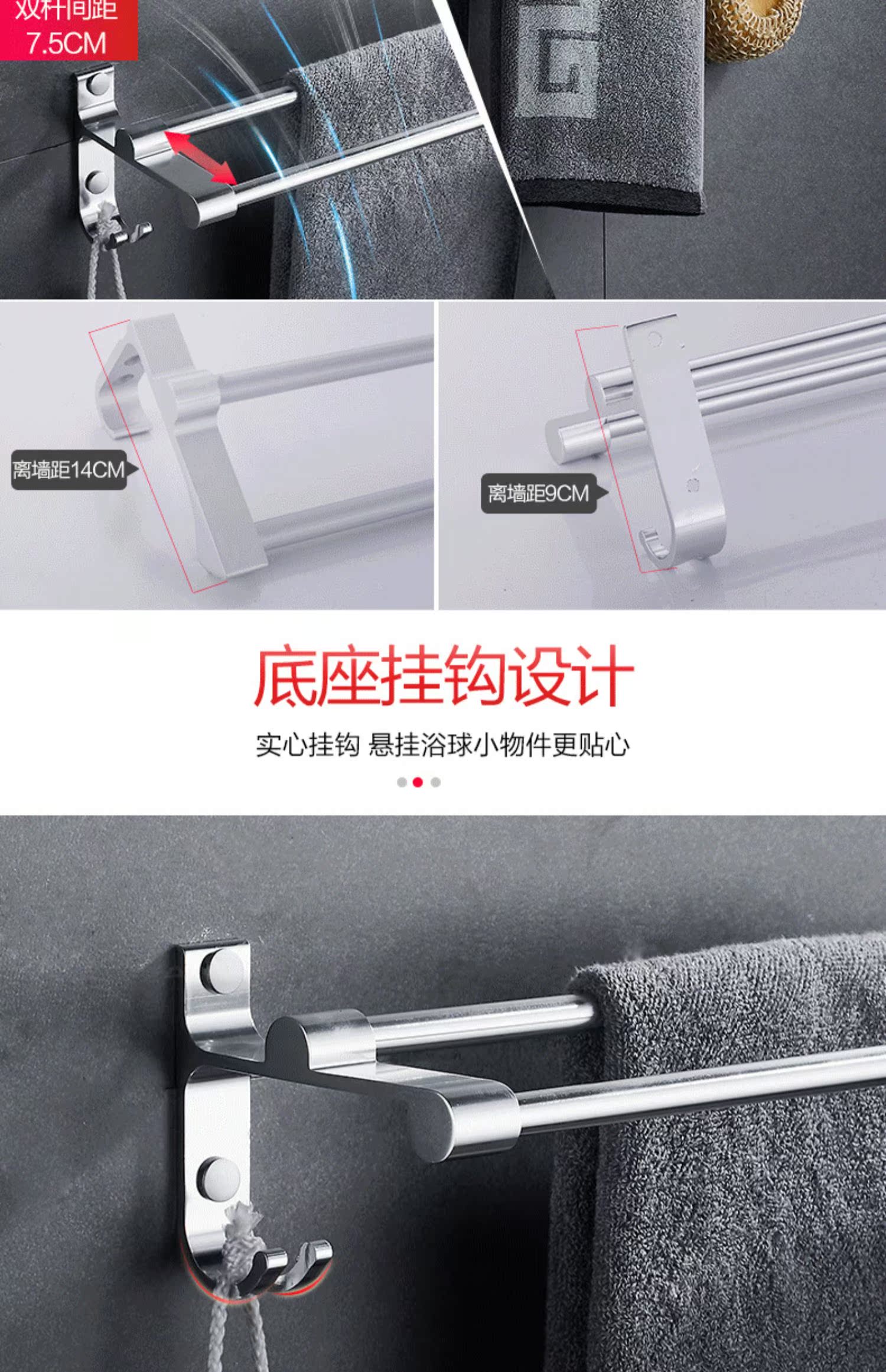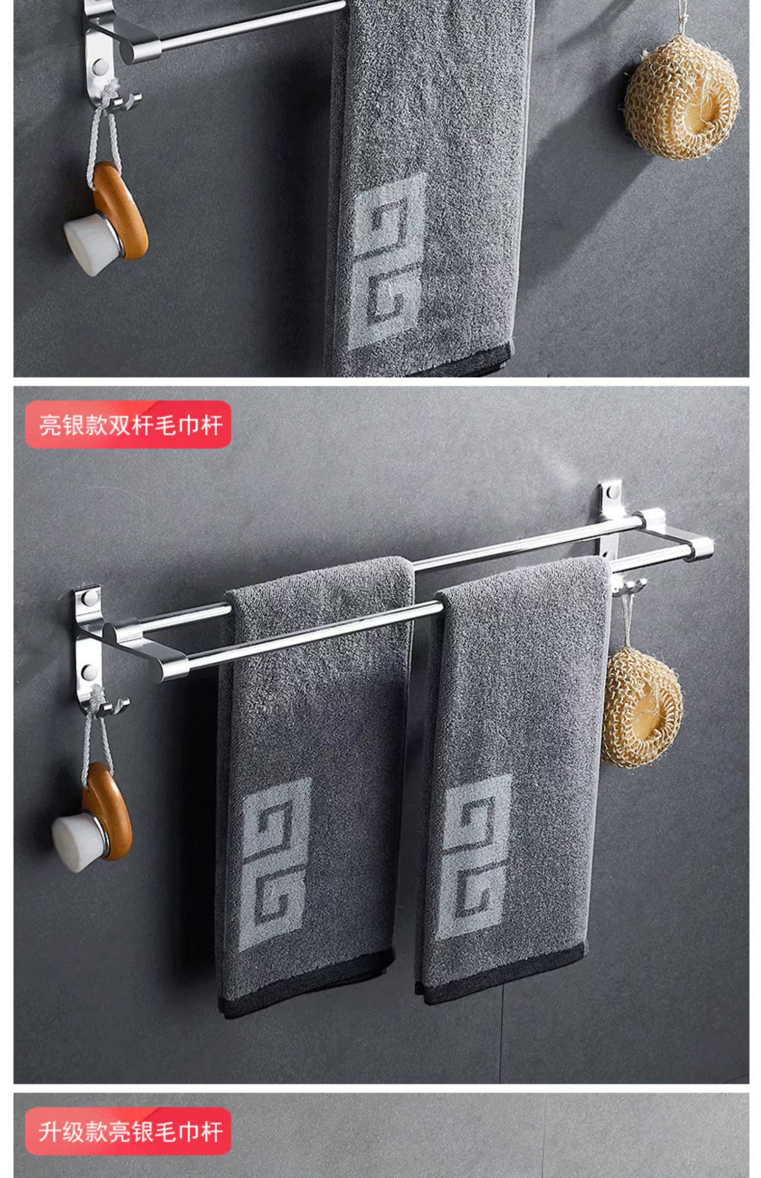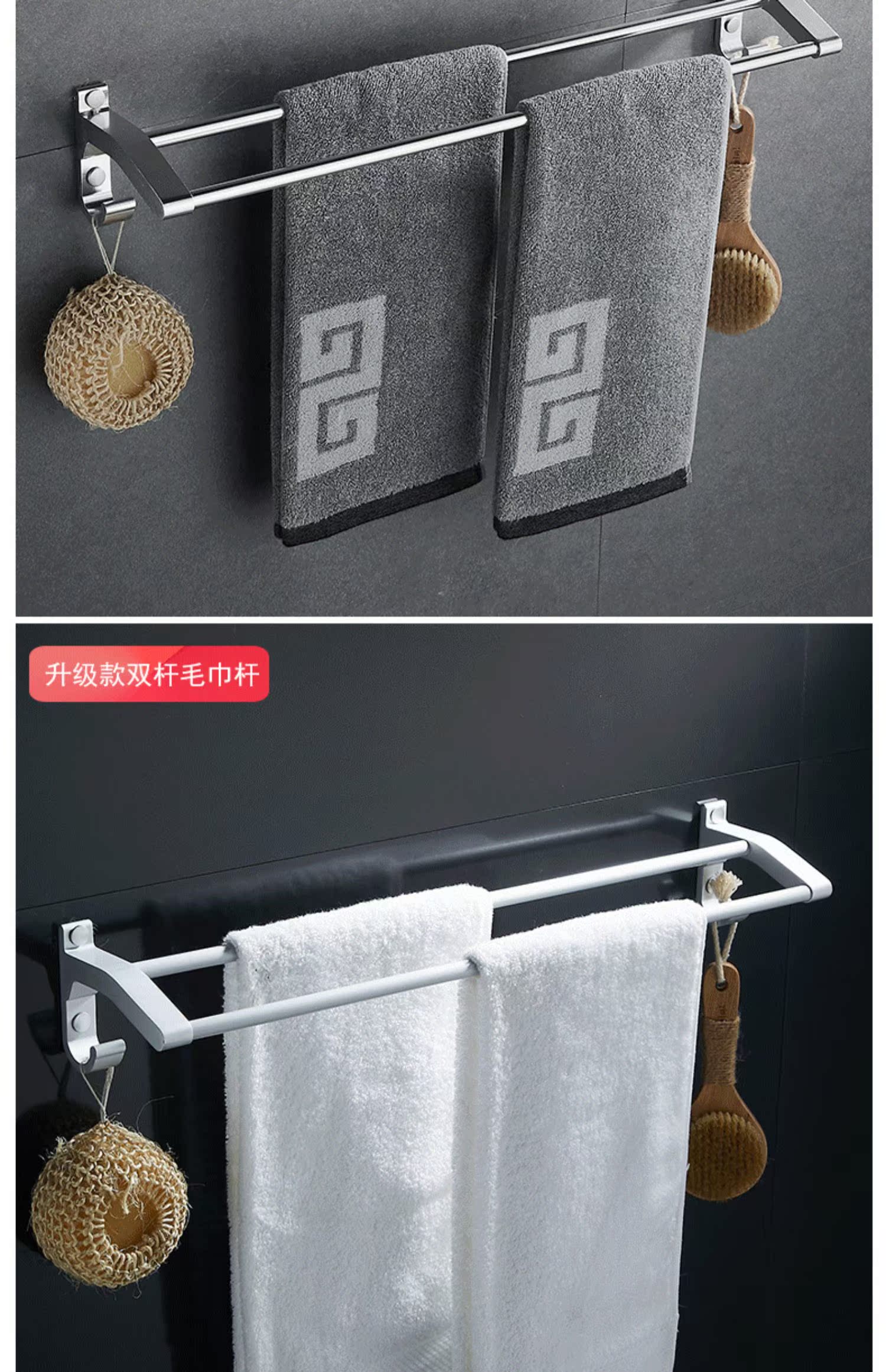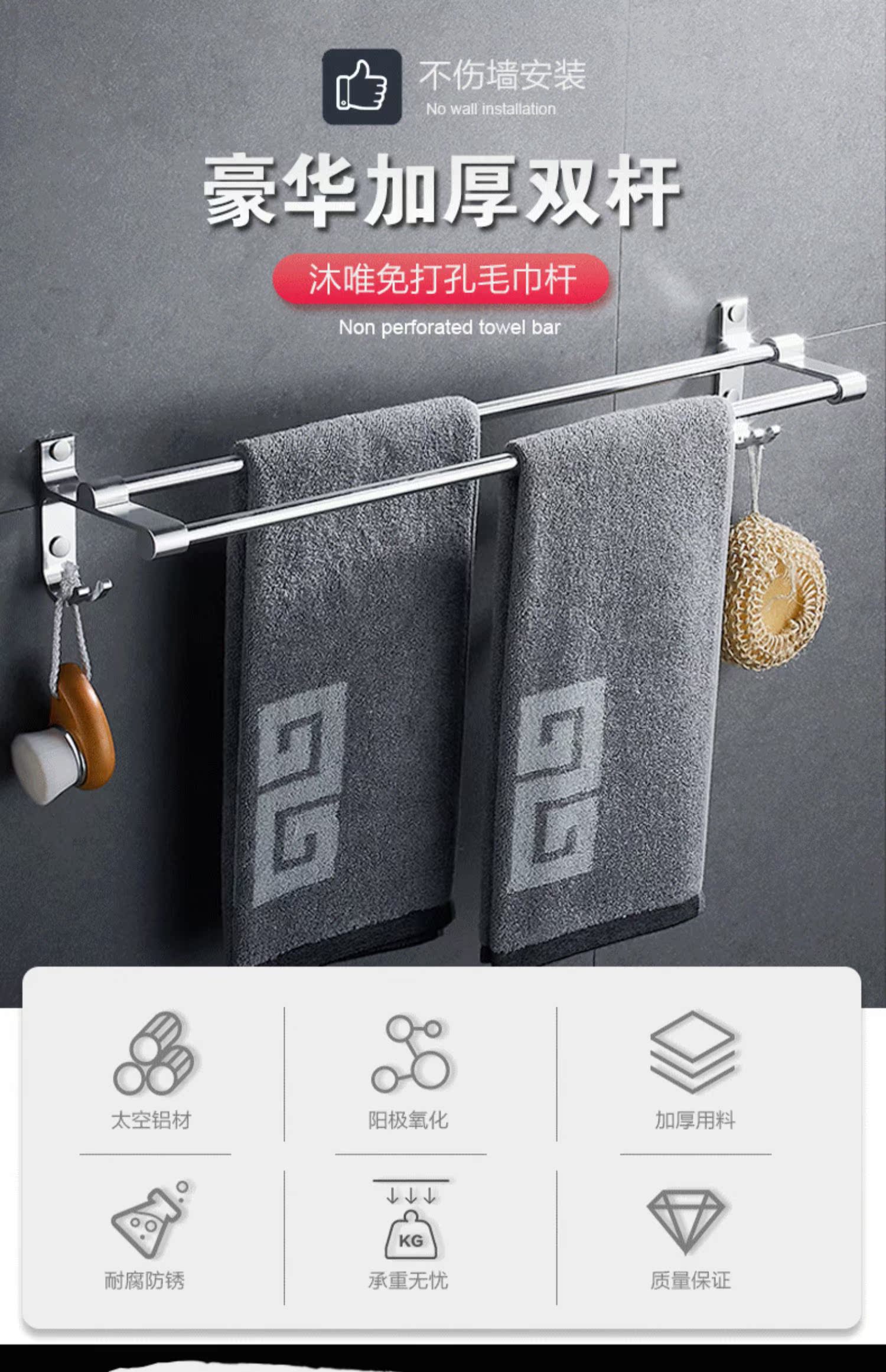 免打孔双杆毛巾架,免打孔不伤墙,送胶水+辅助贴,安装简单,太空铝阳极氧化不生锈,承载能力超强,10年内掉落免费补发。【赠运费险】