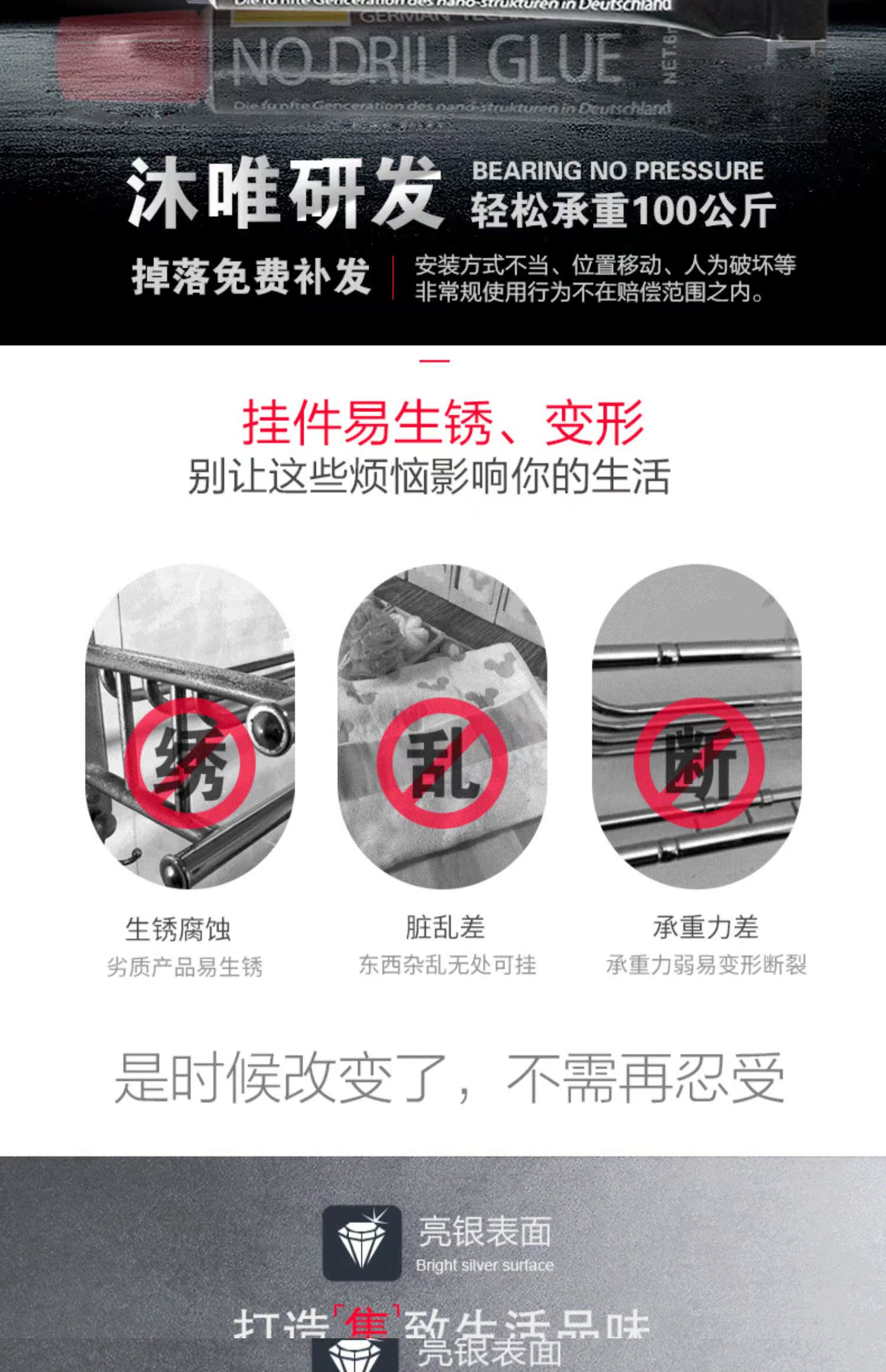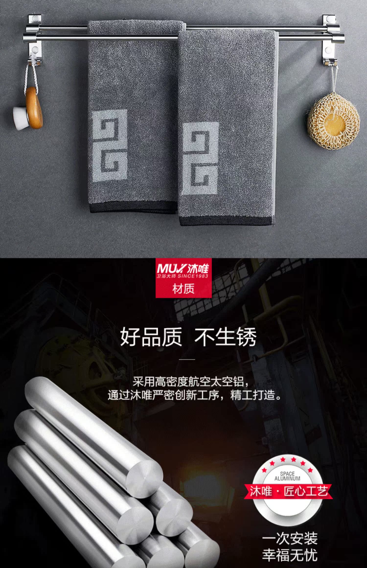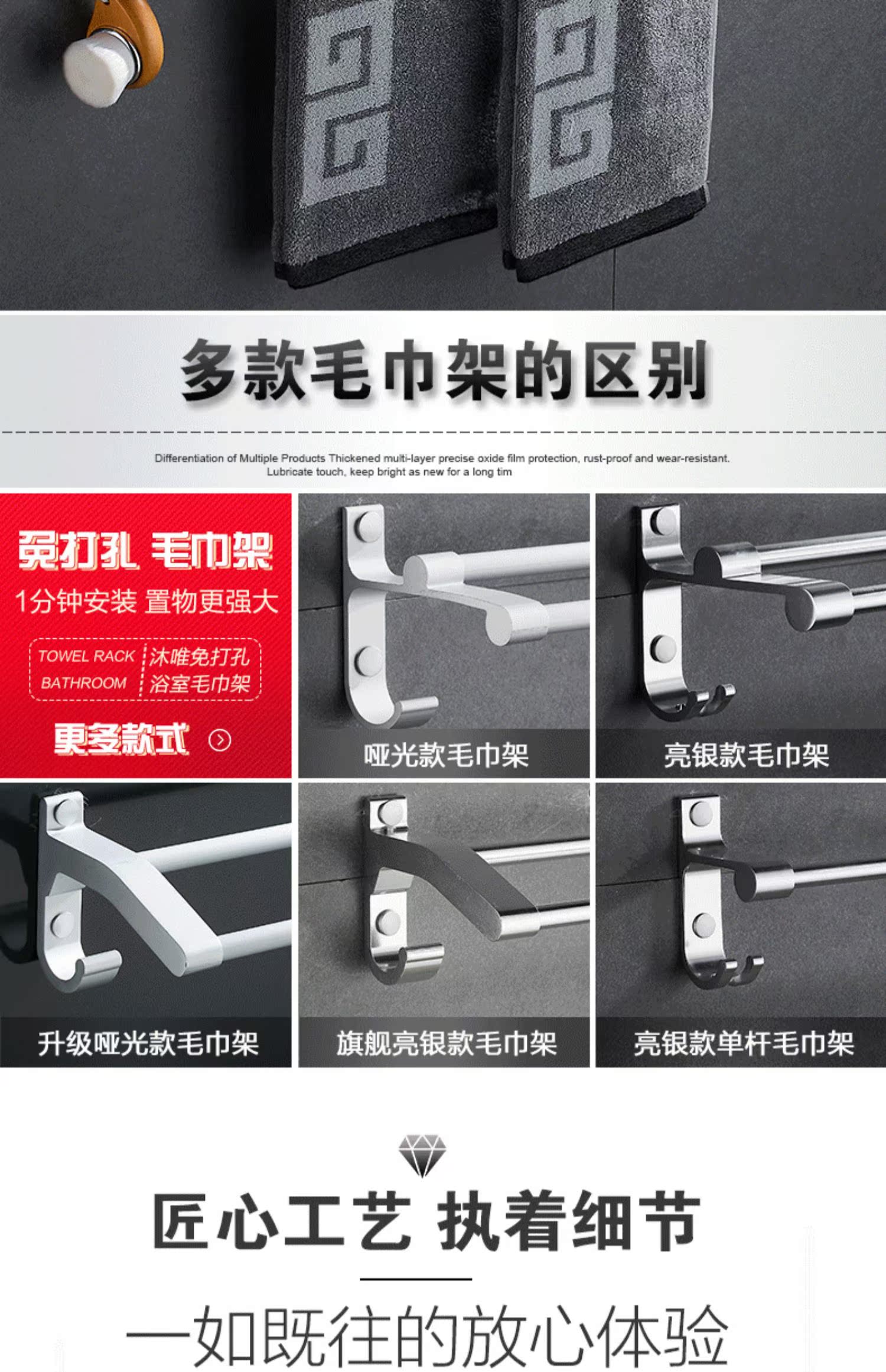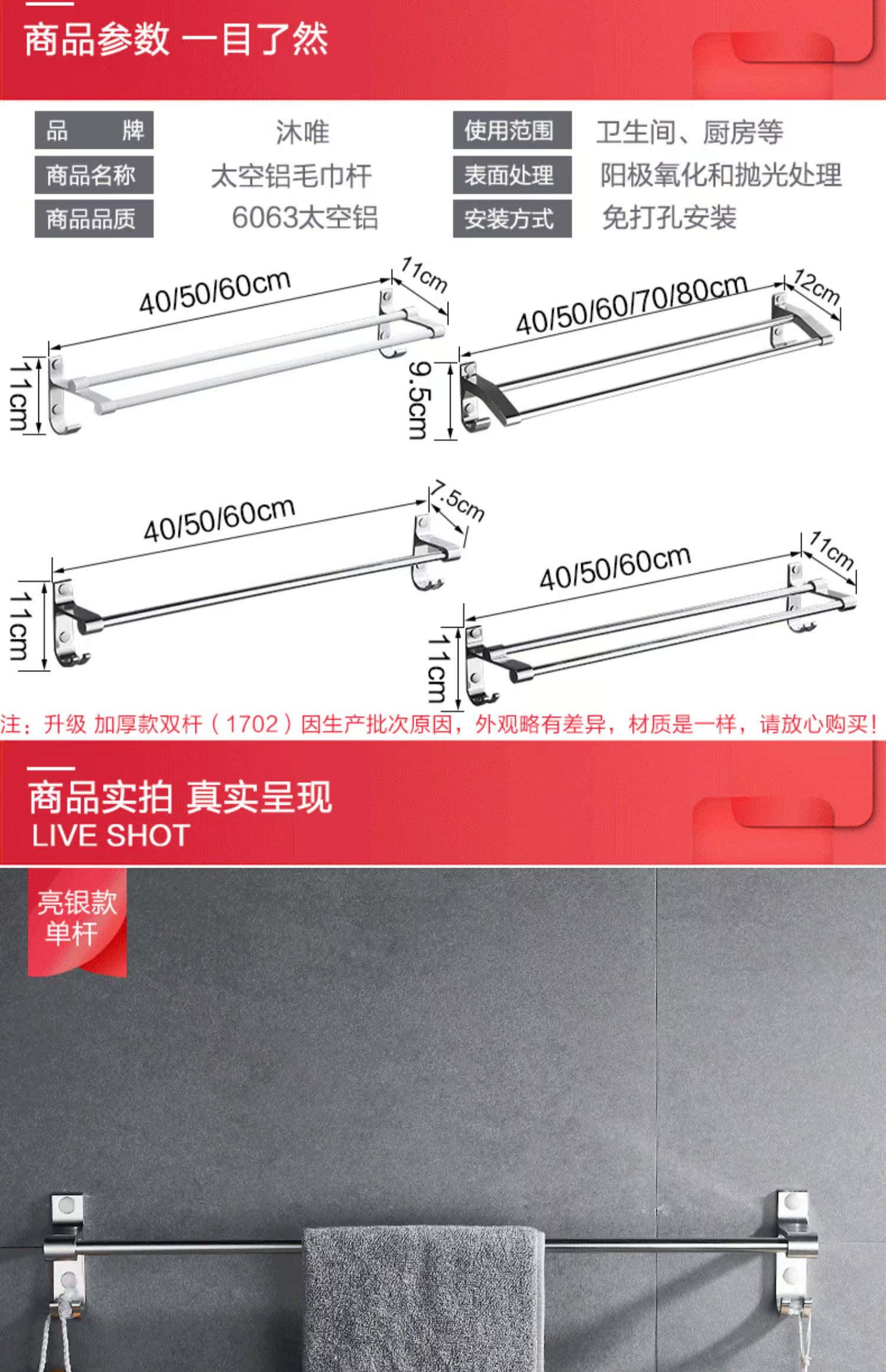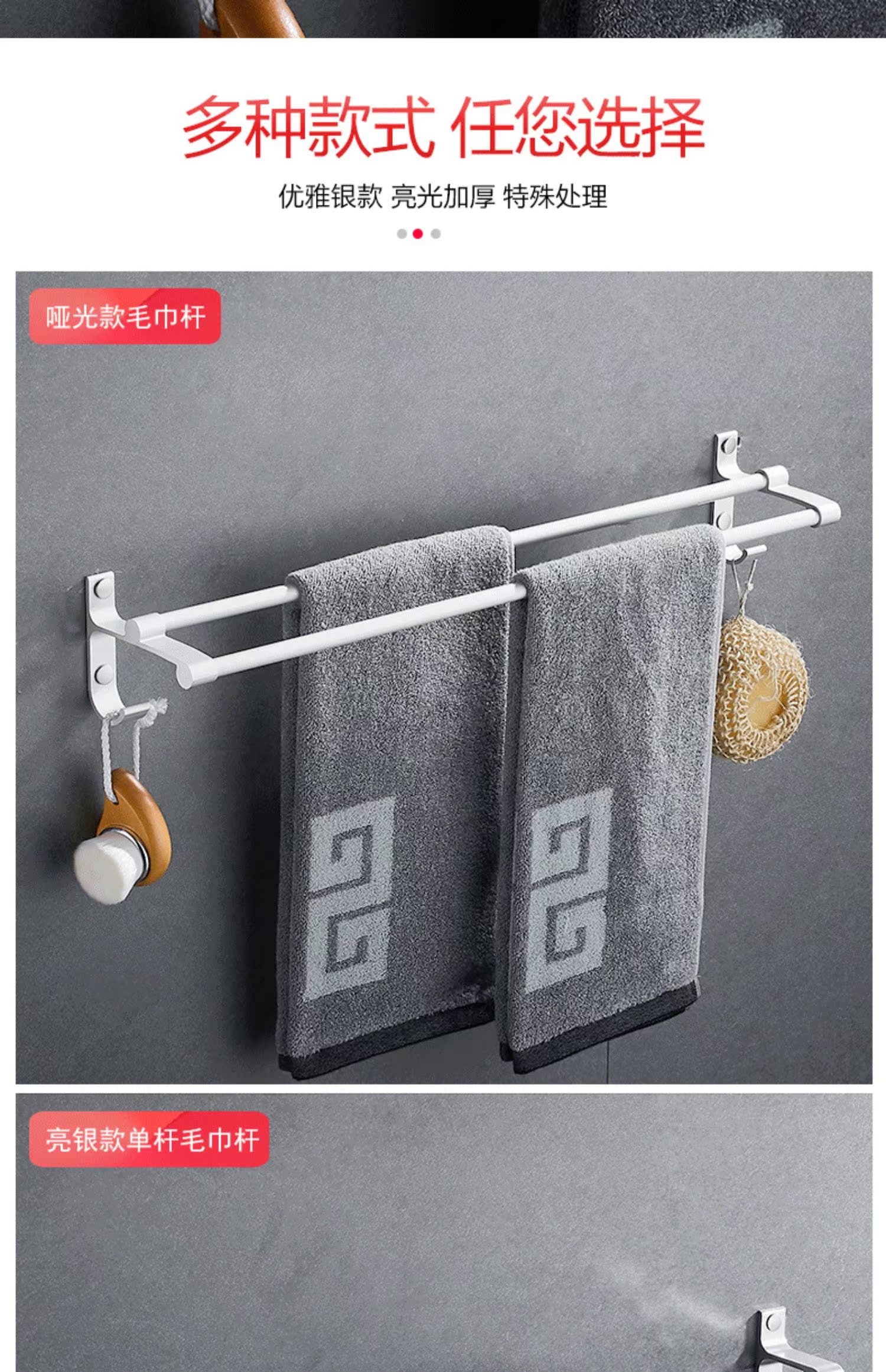 免打孔双杆毛巾架,免打孔不伤墙,送胶水+辅助贴,安装简单,太空铝阳极氧化不生锈,承载能力超强,10年内掉落免费补发。【赠运费险】