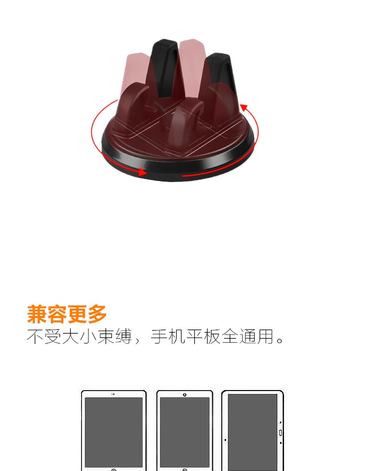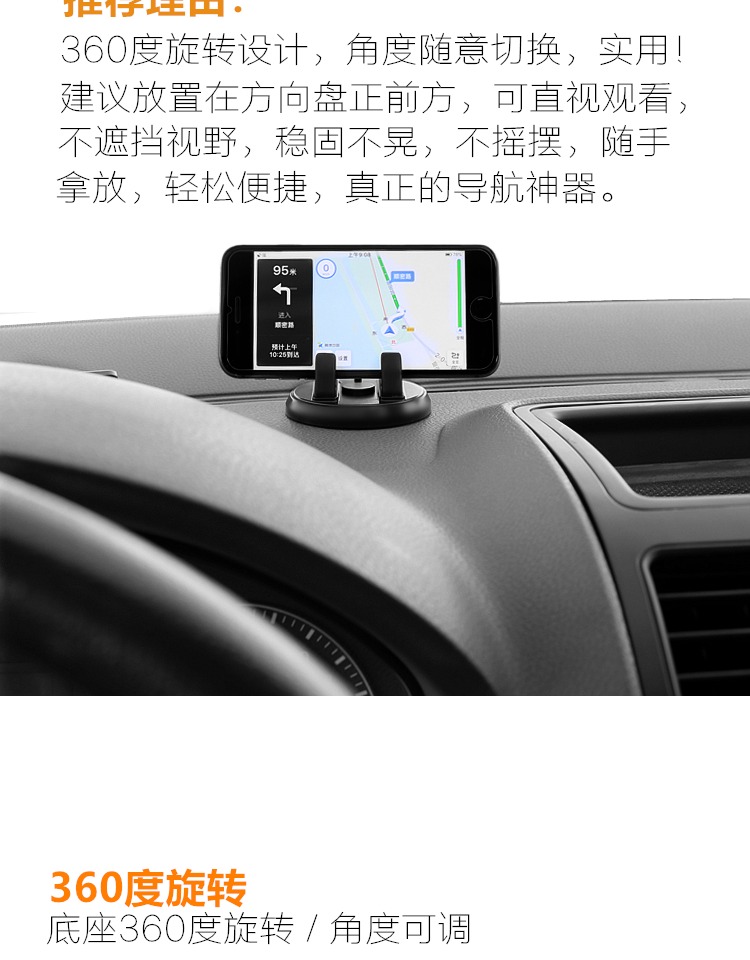 车载多功能通用手机支架,360度旋转,横屏竖屏观看手机,单手操作,放下即可用!吸盘式设计,吸到中控台,抖动不掉,轻松应对崎岖山路、刹车等各种情况!【赠运费险】