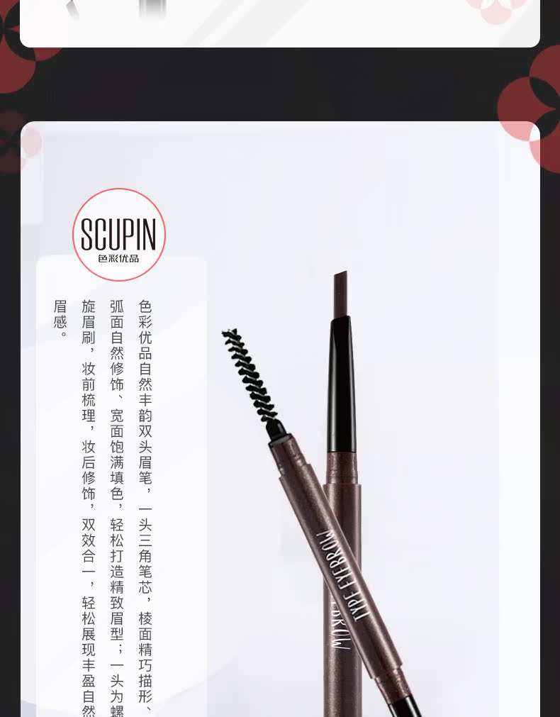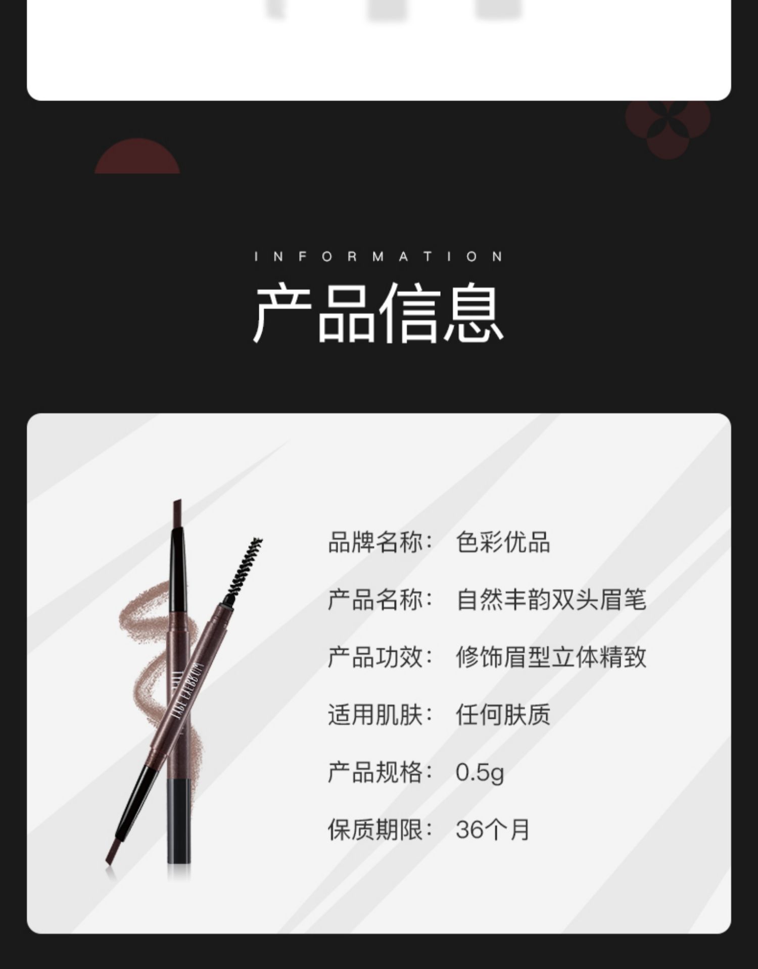 【色彩优品】双头眉笔彩妆初学者,持久防水不晕染,浓黑流畅,人性化曲线管型设计,轻奢派金灿外观打造,持久妆容,一整天无需补妆,浓黑有神轻松卸妆。