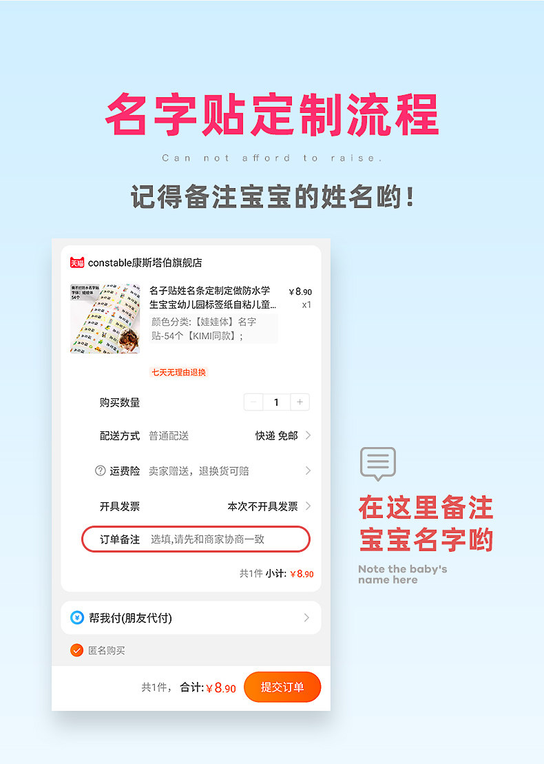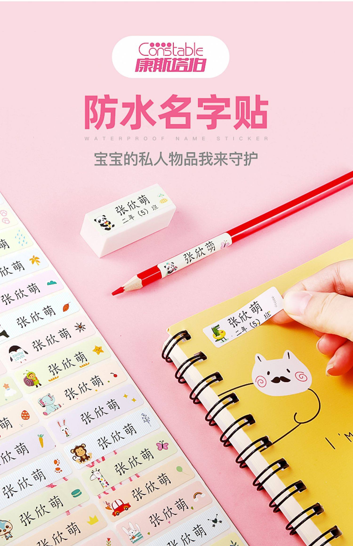 【可定制】超值防水名字贴78个,萌趣图案+字体设计,简单而不单调,开学季必抢!安全无味薄膜,可防水防脏防皱,书本文具等都可贴,平整不起泡,养成管理个人物品的好习惯,保护宝宝自己的私人物品。