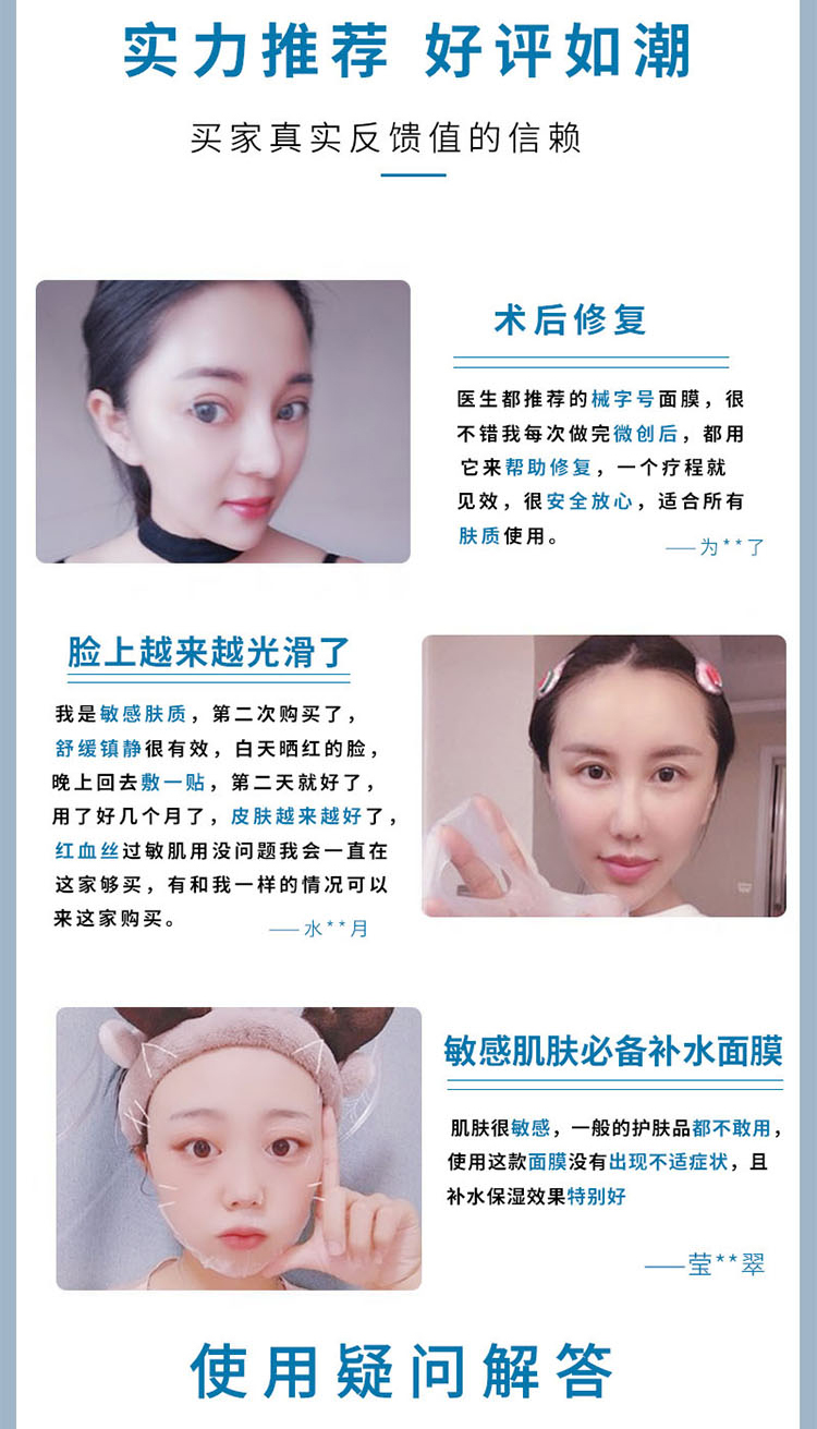 【三甲医院同款】医用级面膜,二类器械,术后修复,无菌生产,敏感肌克星,日常急救型,淡化痘印,防止感染,消除炎症,过敏肌肤等,500家三甲医院在售!