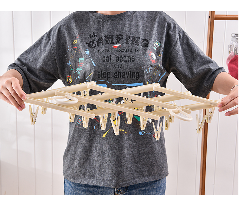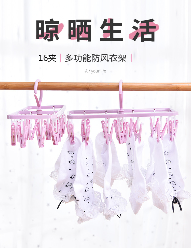 16个夹衣架,加粗弹簧,夹力强劲,冬天洗个内衣裤,还有手套袜子等等小物件用它挂最合适了,还能节省晾晒空间呢