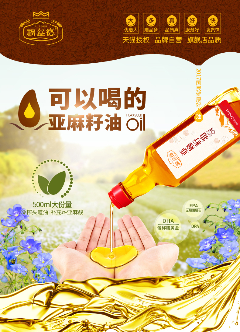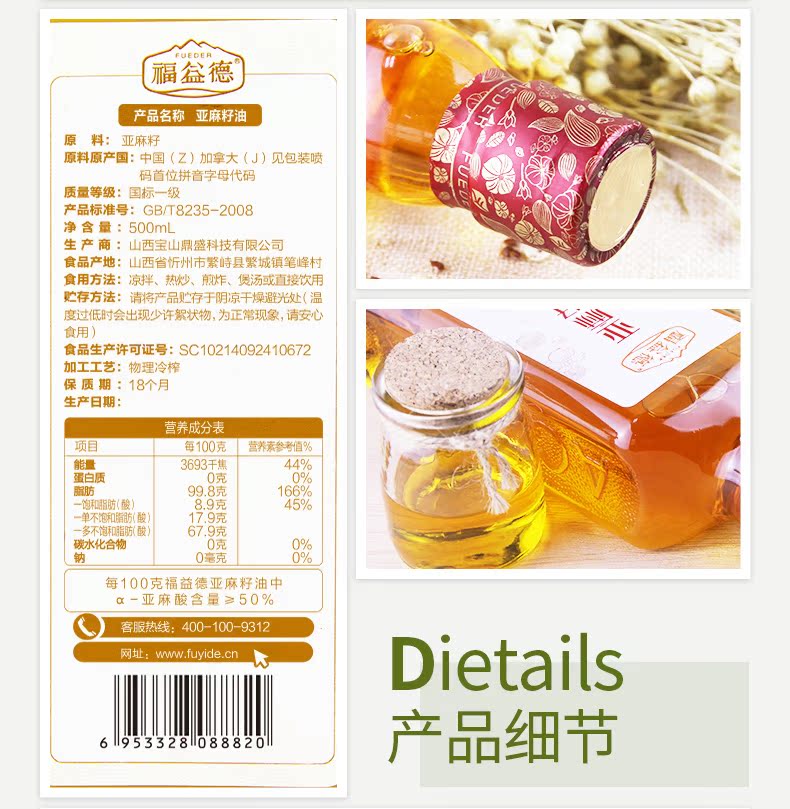 孕妇可以喝的亚麻籽油,出口品质,双重国际认证,头道冷初榨,补充亚麻酸,营养丰富,健康食用油,居家必备,健康生活优选好品~【赠运费险】