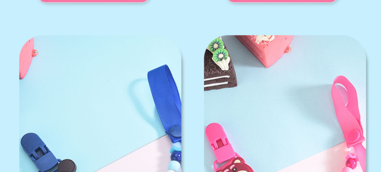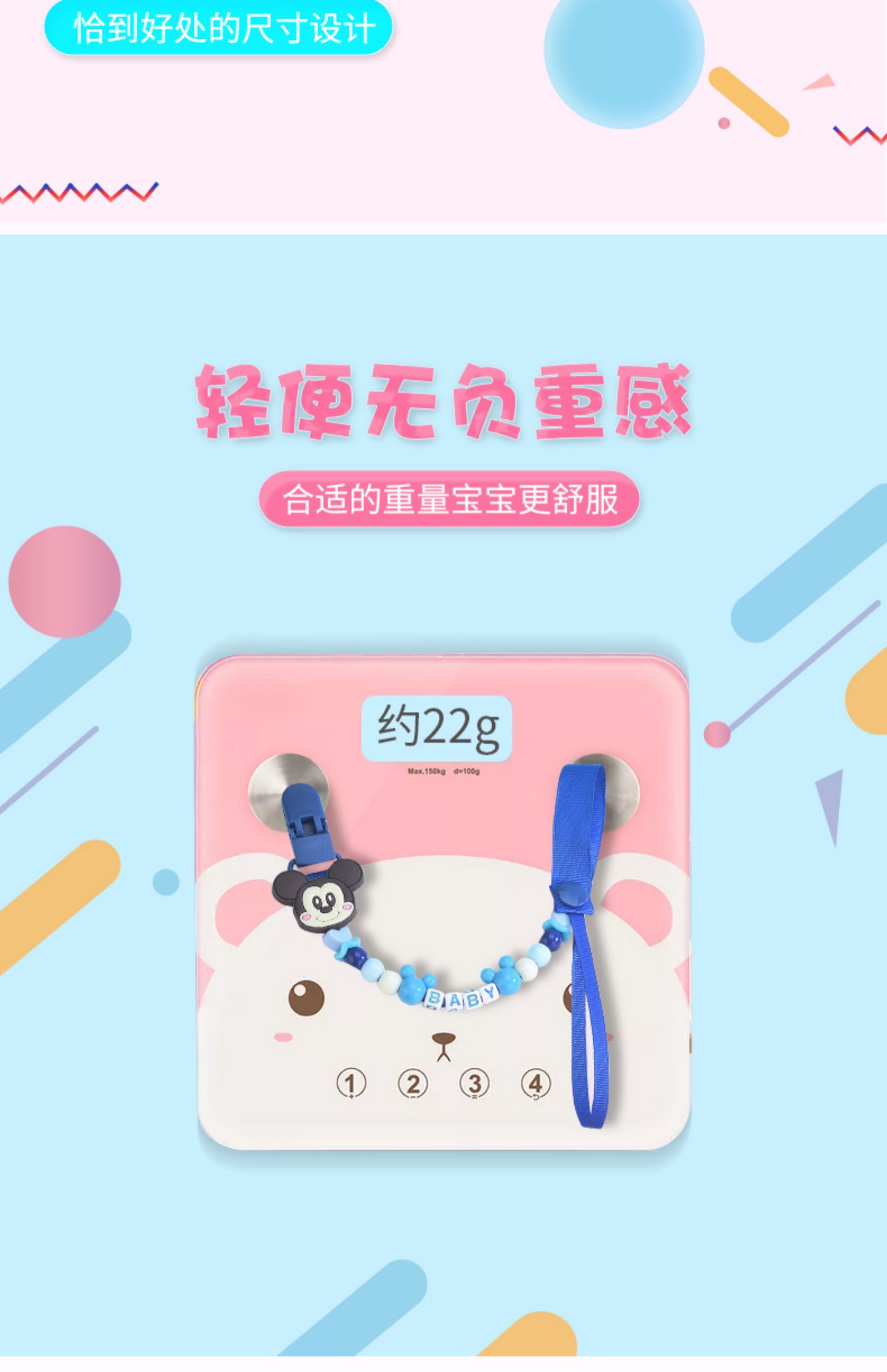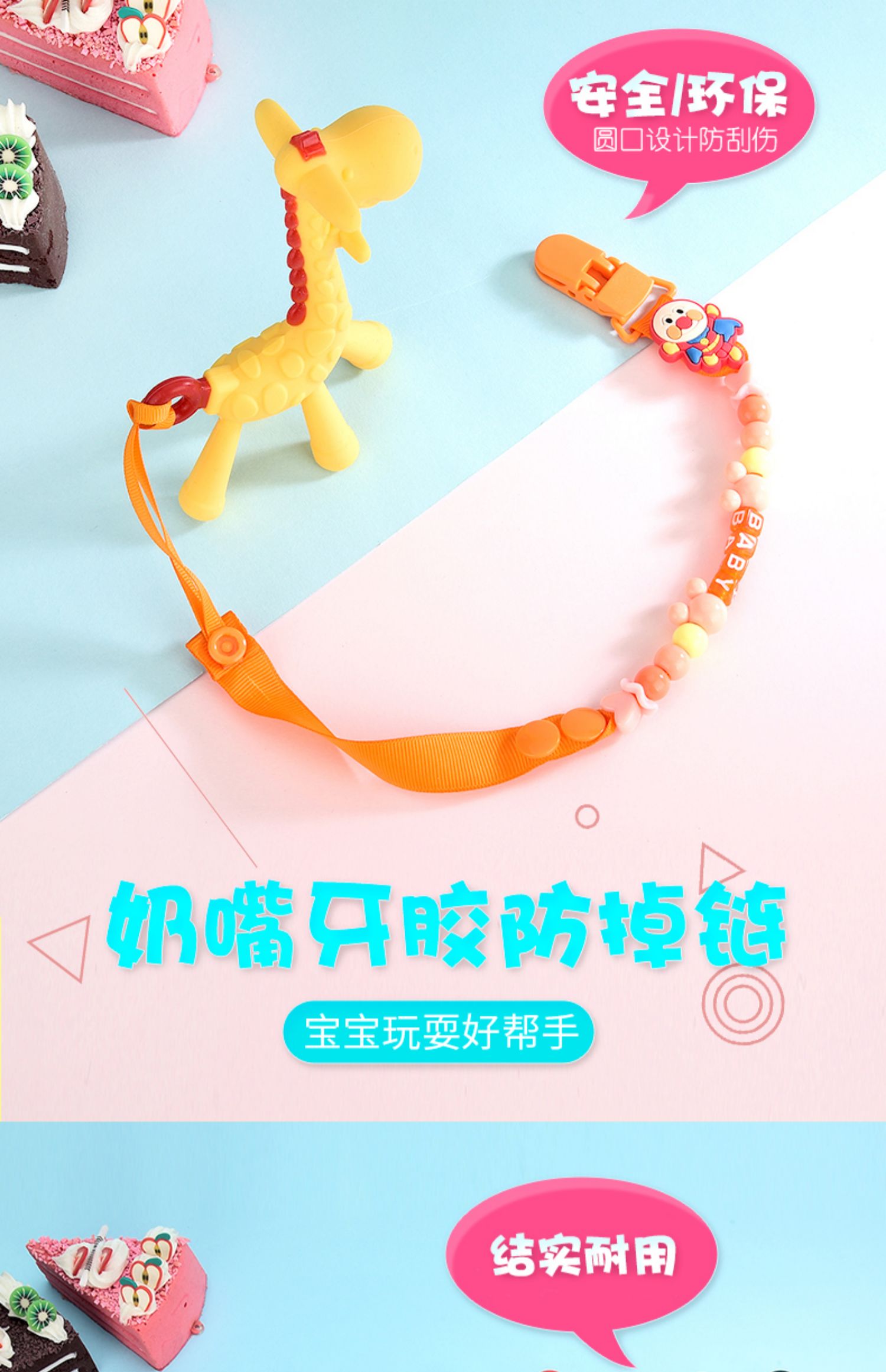 可以咬的硅胶防掉链,食品级硅胶材质,安全无毒,妈妈放心,一物两用,锻炼抓握,Q弹柔软,放心啃咬,光滑无毛边,方便携带