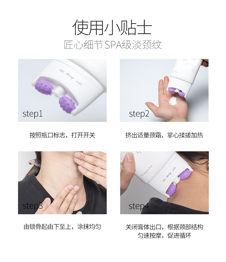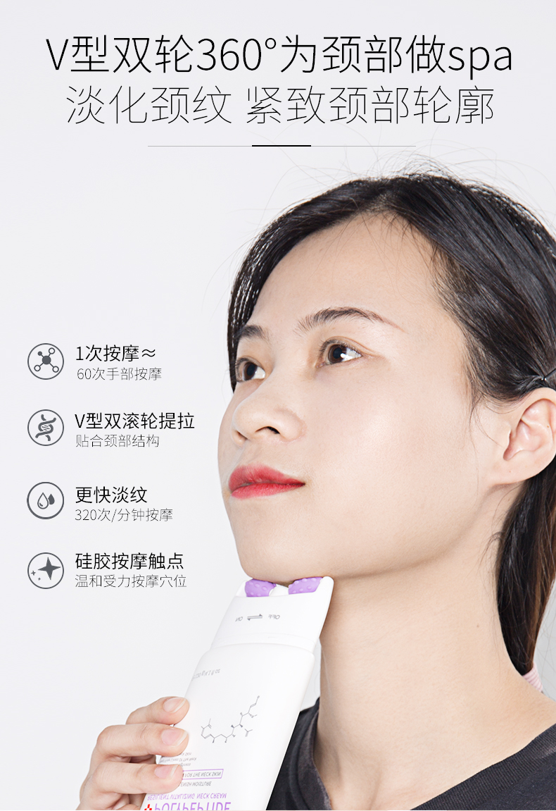 还在羡慕别人拥有天鹅颈?别再羡慕了,依姿露颈霜让你告别“火鸡脖”,一次呵护相当于60次spa体验,美白祛黄,淡化颈纹,疏通淋巴,双向提拉紧致!专利V型设计按摩滚轮,每天五0,脖子美美哒!