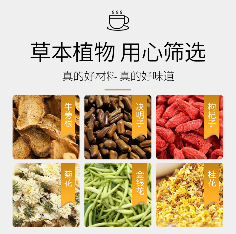 【买二送一,买三送二】精选决明子、金银花、菊花、枸杞子、桂花等等、升级版膳食纤维配方,清火养肝明目,美容养颜,看得见的材质,喝得放心,忙忙碌碌,加班加点,泡上一杯暖暖得菊花决明茶~