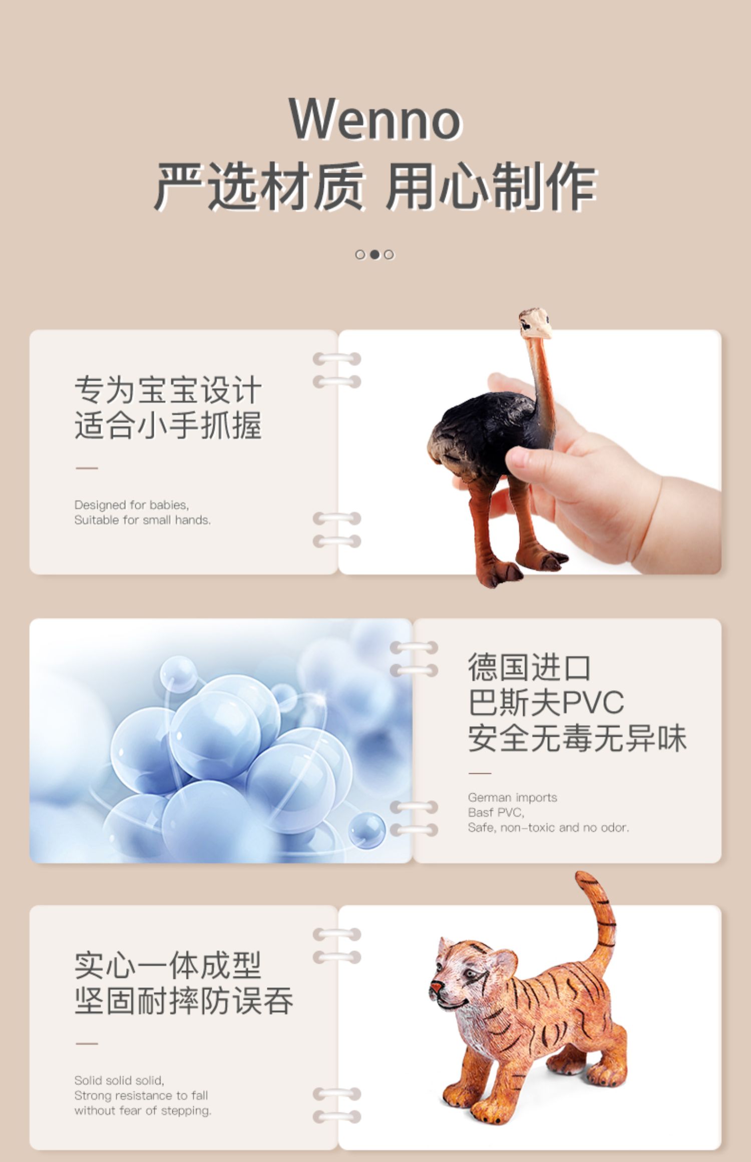 进口PVC材质,无毒无味。扫码更能学习动物知识,单词。仿真玩具野生动物模型系列,造型逼真,涂装精美,亲子动物教具,益智玩具,帮助孩子成长!