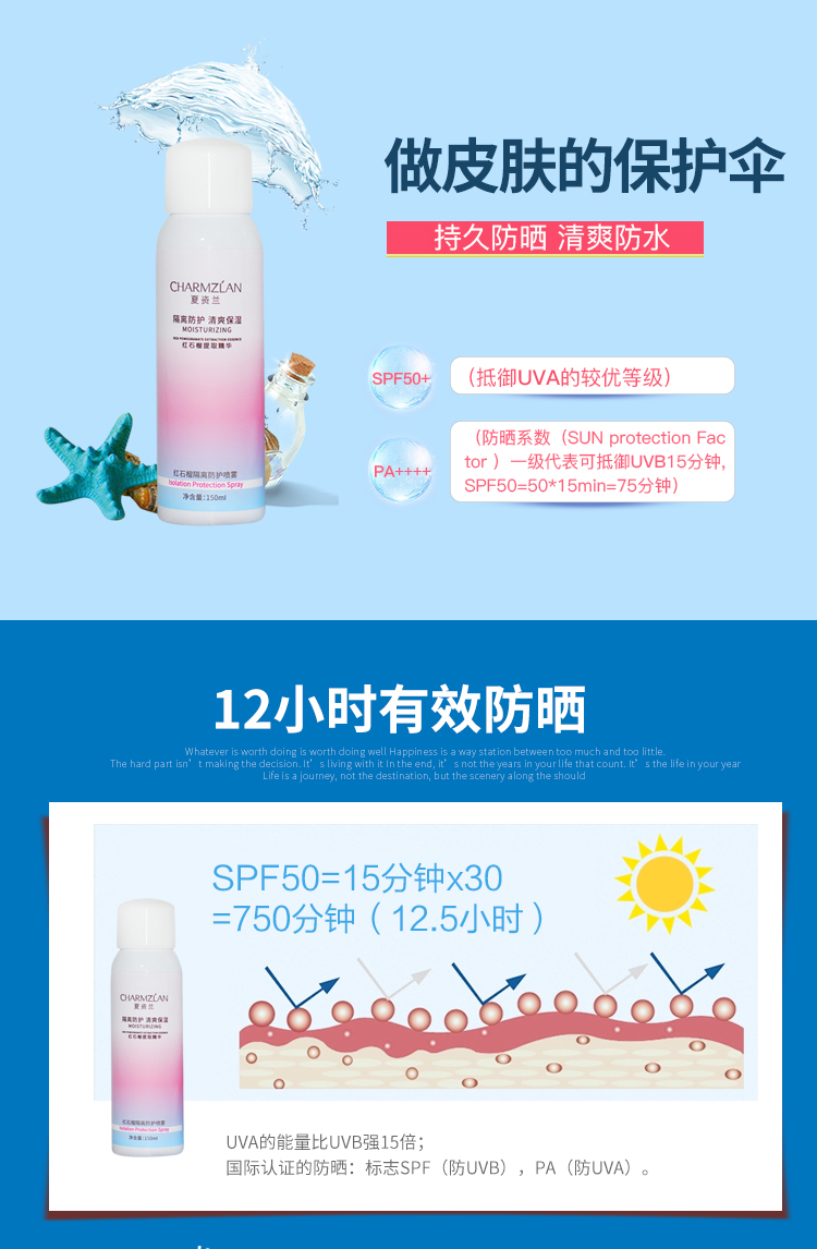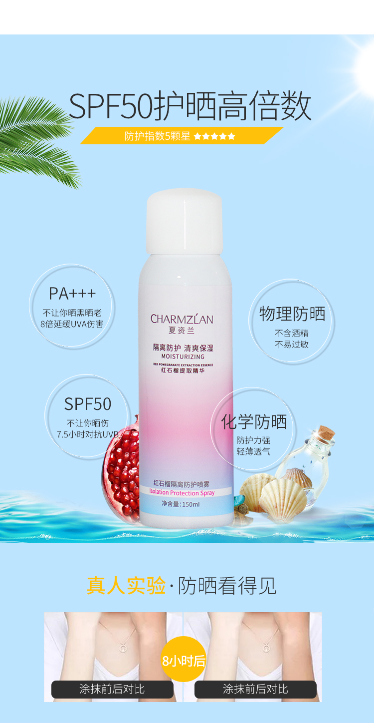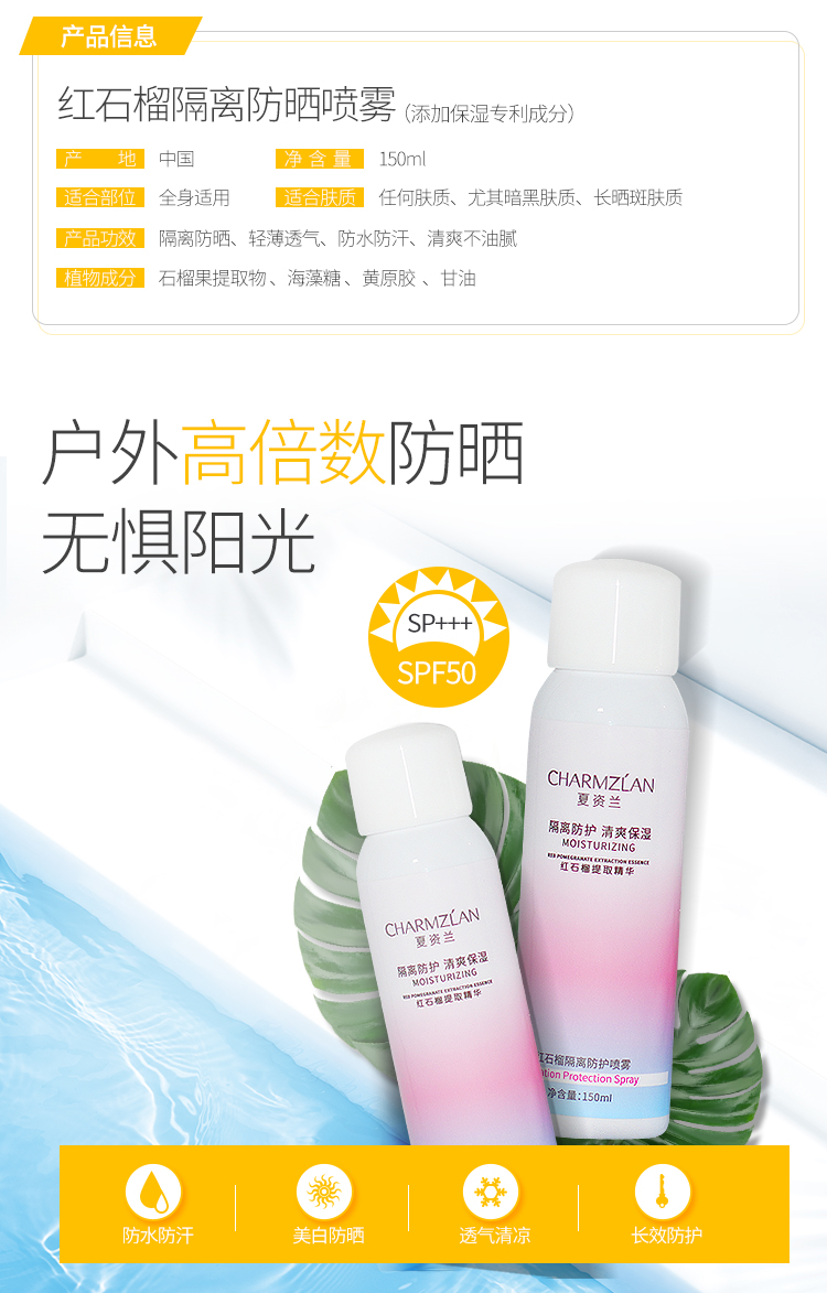 抖音网红达人推荐,夏季必备神仙防晒喷雾!提取红石榴精华,清爽不油腻,防水防汗持久隔离,SPF50+护晒高倍数,对抗紫外线长达12小时!不含酒精,敏感肌放心用~