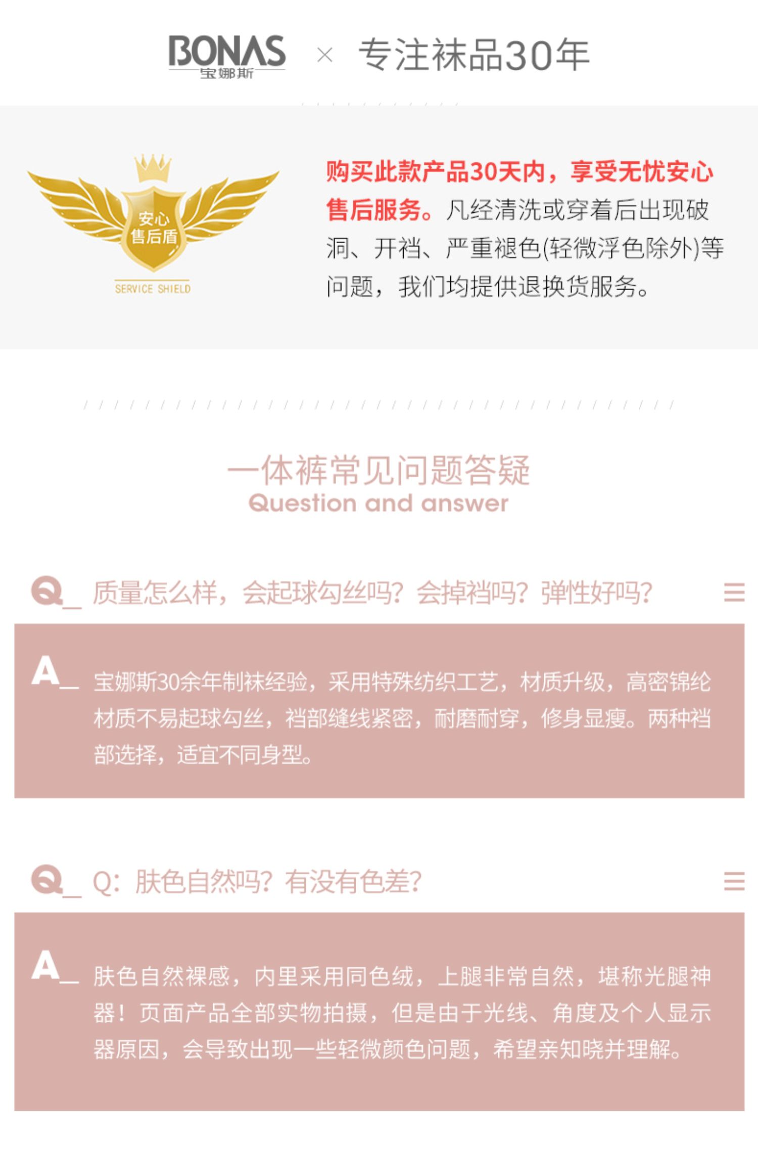 【今日推荐】大牌宝娜斯30余年制袜经验,采用特殊纺织工艺,材质升级,高密锦纶 材质不易起球勾丝,裆部缝线紧密,耐磨耐穿,修身显瘦。两种款式选择,适宜不同身型。今日下单仅39元【两条】