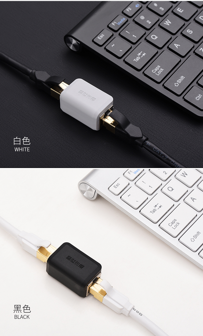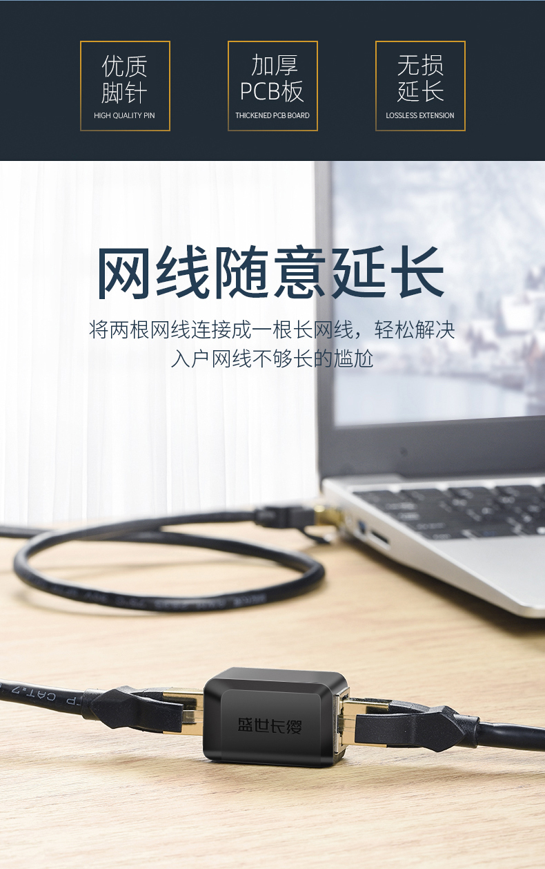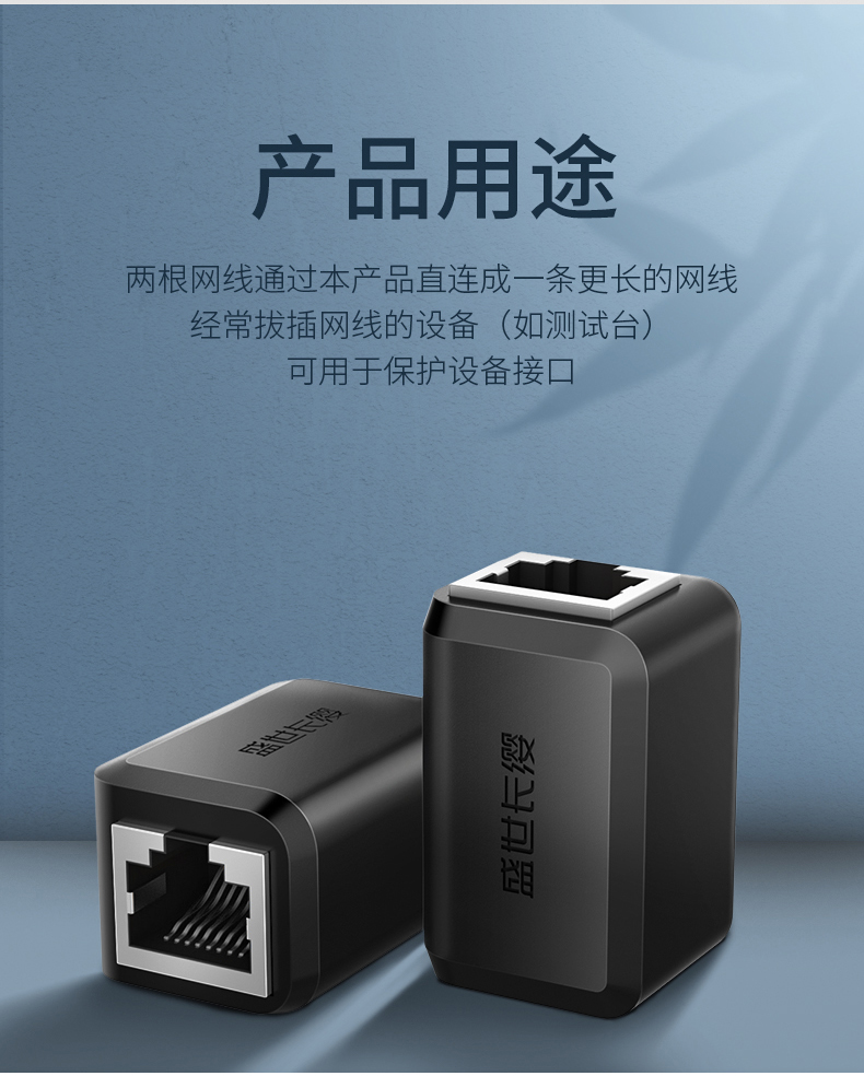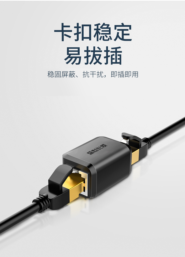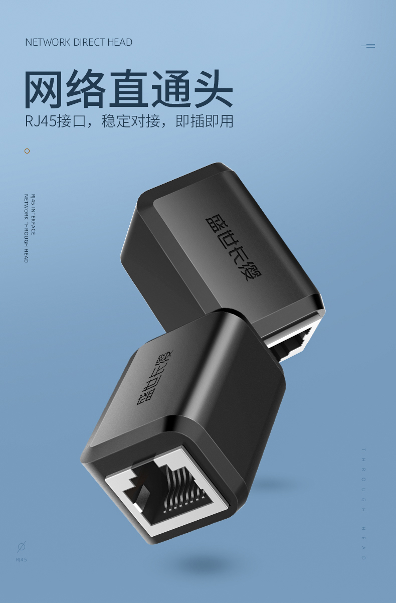 盛世长缨网线对接头,信号稳定,支持千兆,100米延长,解决网线不够长!金属外壳屏蔽保护,安全放心,即插即用!